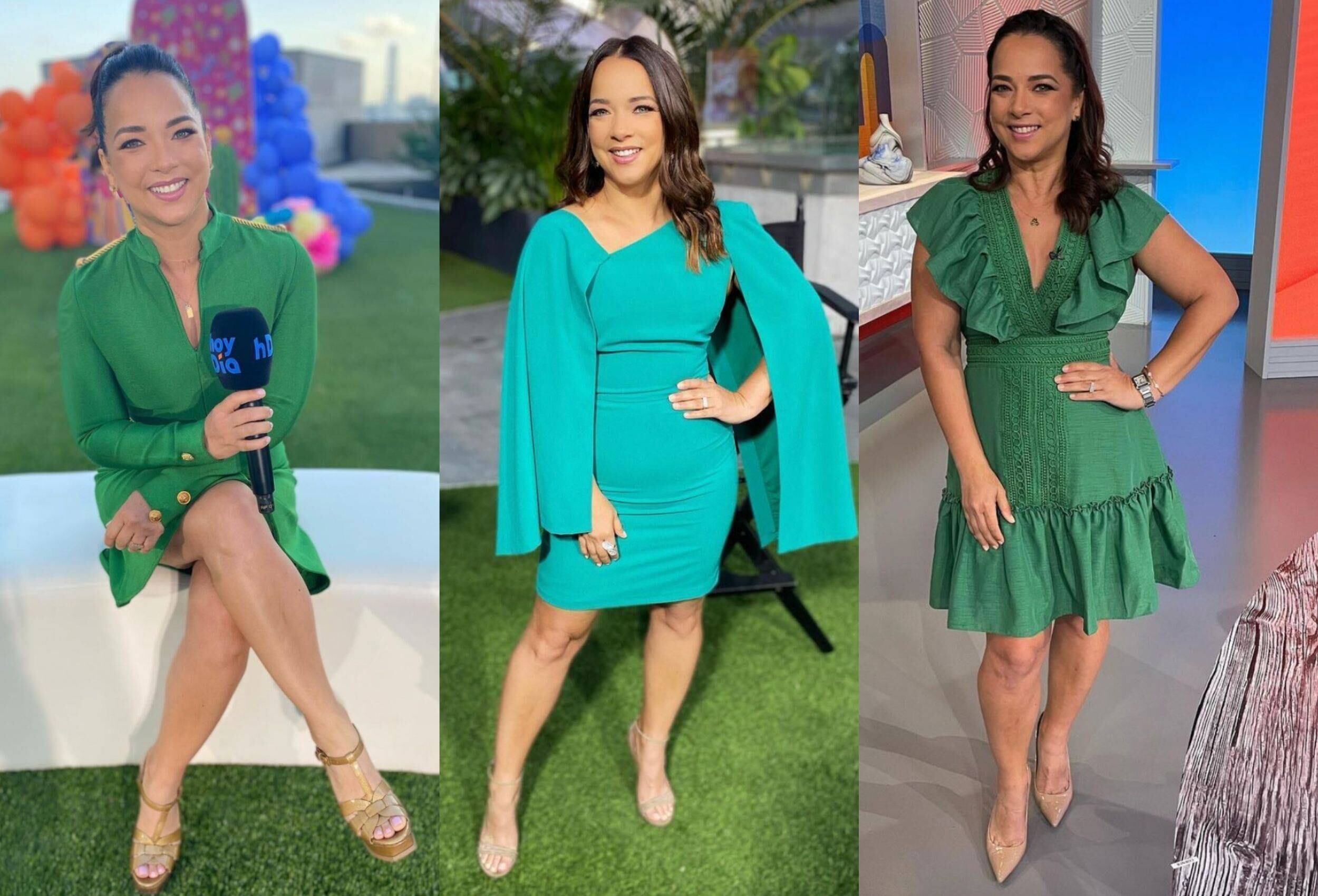 Adamari López decidió cambiar un poco el verde, y optó por un vestido en una tonalidad más clara.