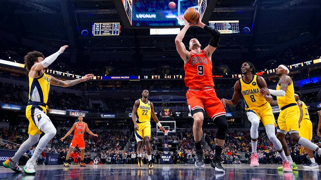 Los Pacers carecían de sus cuatro postes principales, así que el entrenador de Chicago, Billy Donovan, pidió que Vucevic dominara el corazón de la cancha.