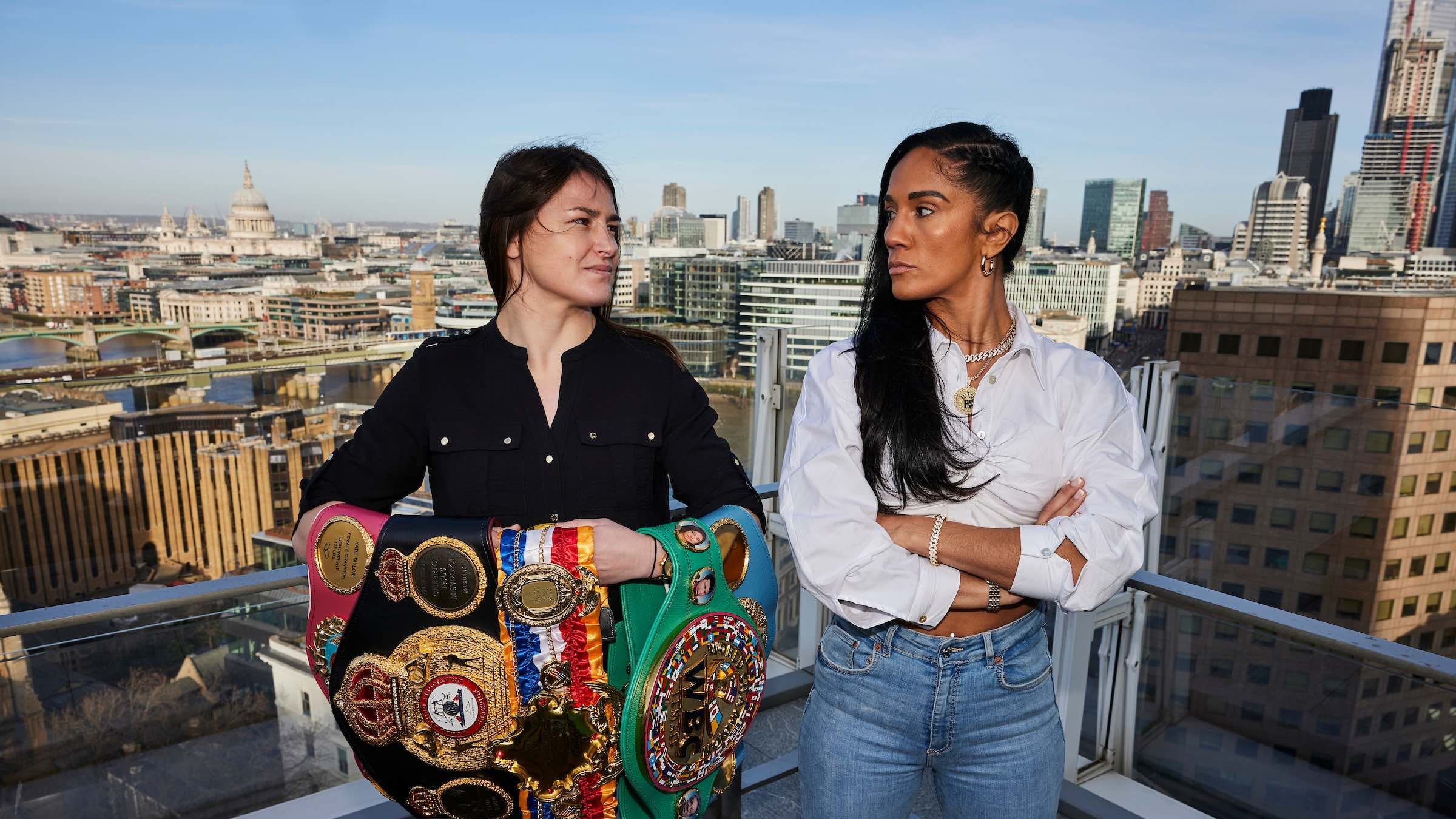 El encuentro entre ambas boxeadora se produjo durante una conferencia de prensa celebrada en Londres y que será el último encuentro de Serrano y Taylor antes de retirarse a entrenar camino a lo que ha sido calificado como una histórica cartelera boxística. Taylor (20-0 6 KOs) pondrá todos sus títulos de peso ligero (135 lbs) en juego por sexta vez desde que los ganó en junio de 2019 en una guerra contra Delfine Persoon y derrotó a la belga en una revancha en Inglaterra y luego venció a Miriam Gutiérrez, Natasha Jonas, Jennifer Han y Firuza Sharipova