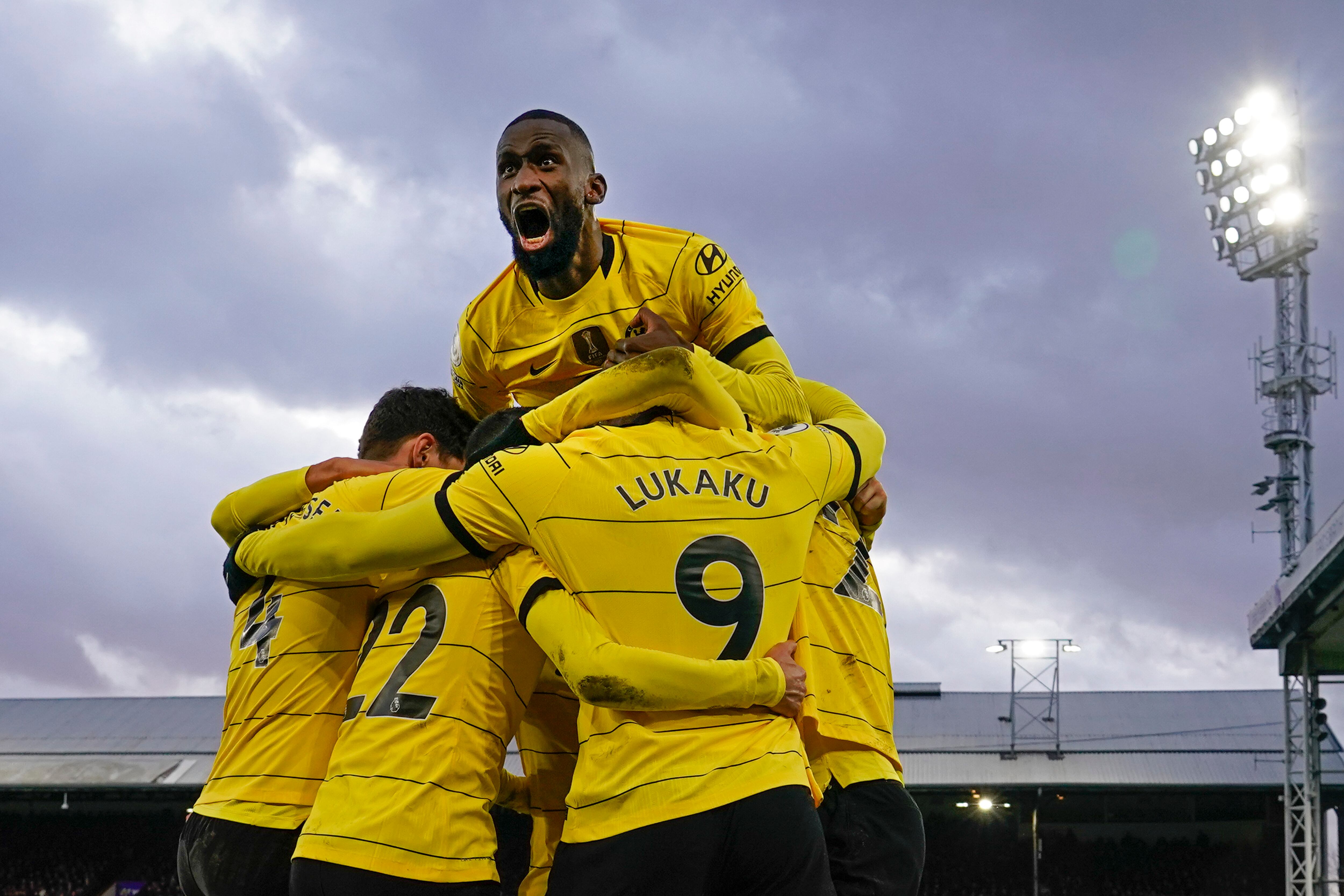 Jugadores del Chelsea celebran después de marcar el primer gol, en partido de la Liga Premier contra Crystal Palace en el Parque Selhurst, en Londres, el sábado 19 de febrero de 2022. (AP Foto/Alberto Pezzali) Jugadores del Chelsea celebran después de marcar el primer gol, en partido de la Liga Premier contra Crystal Palace en el Parque Selhurst, en Londres, el sábado 19 de febrero de 2022. (AP Foto/Alberto Pezzali) (Alberto Pezzali/AP)