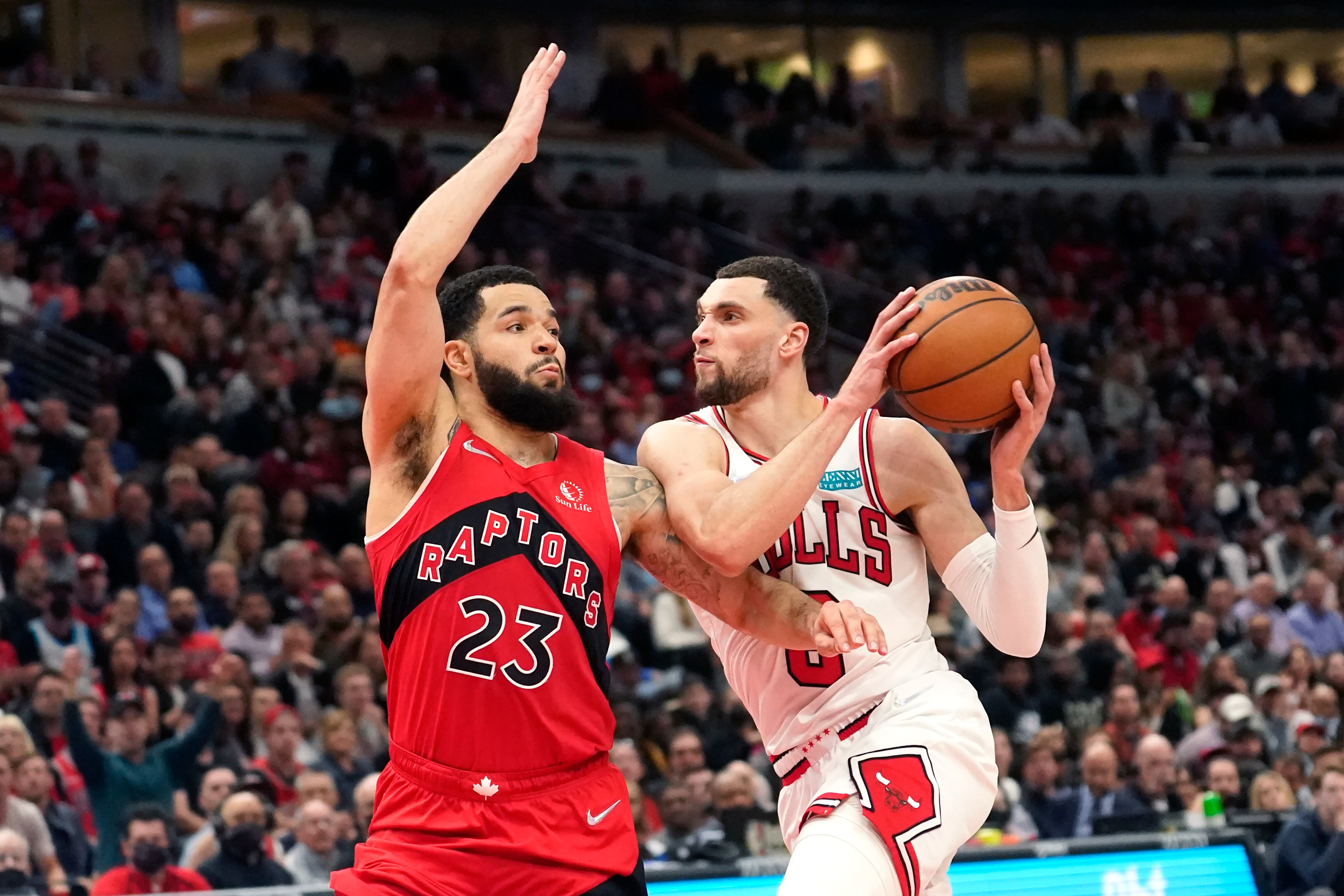 Toronto estuvo cerca hasta que LaVine anotó ocho puntos seguidos para romper el partido al tercer cuarto, cuando los Bulls tuvieron una carrera de 21-8.