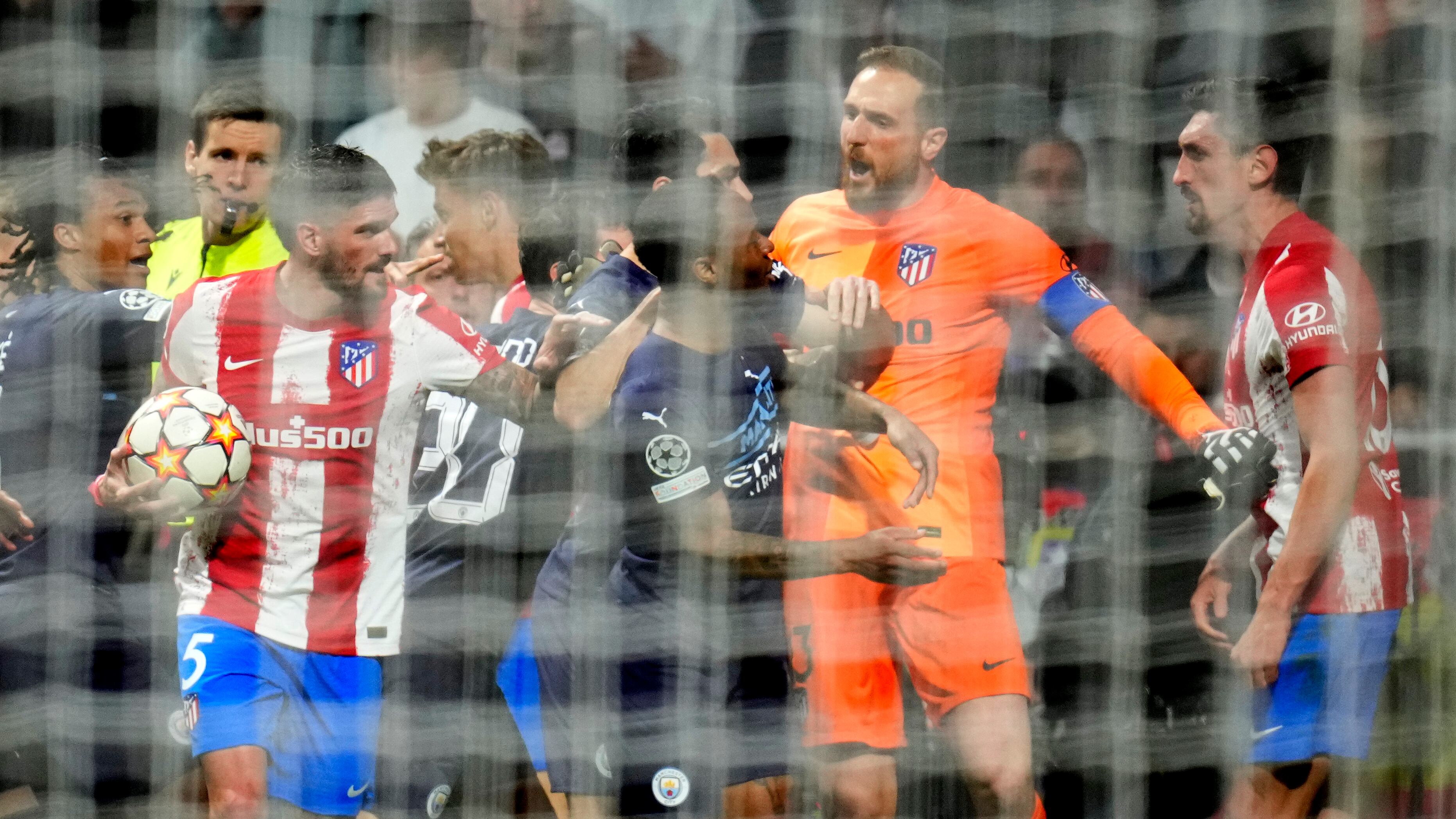 La tensión se encendió a los 89 minutos, cuando el Atlético de Madrid jugaba ya con un hombre menos en el campo. Se avivó la chispa por una patada de Felipe en contra del delantero del City Phil Foden, en el intento del equipo español de conseguir un gol que forzara el alargue del partido.