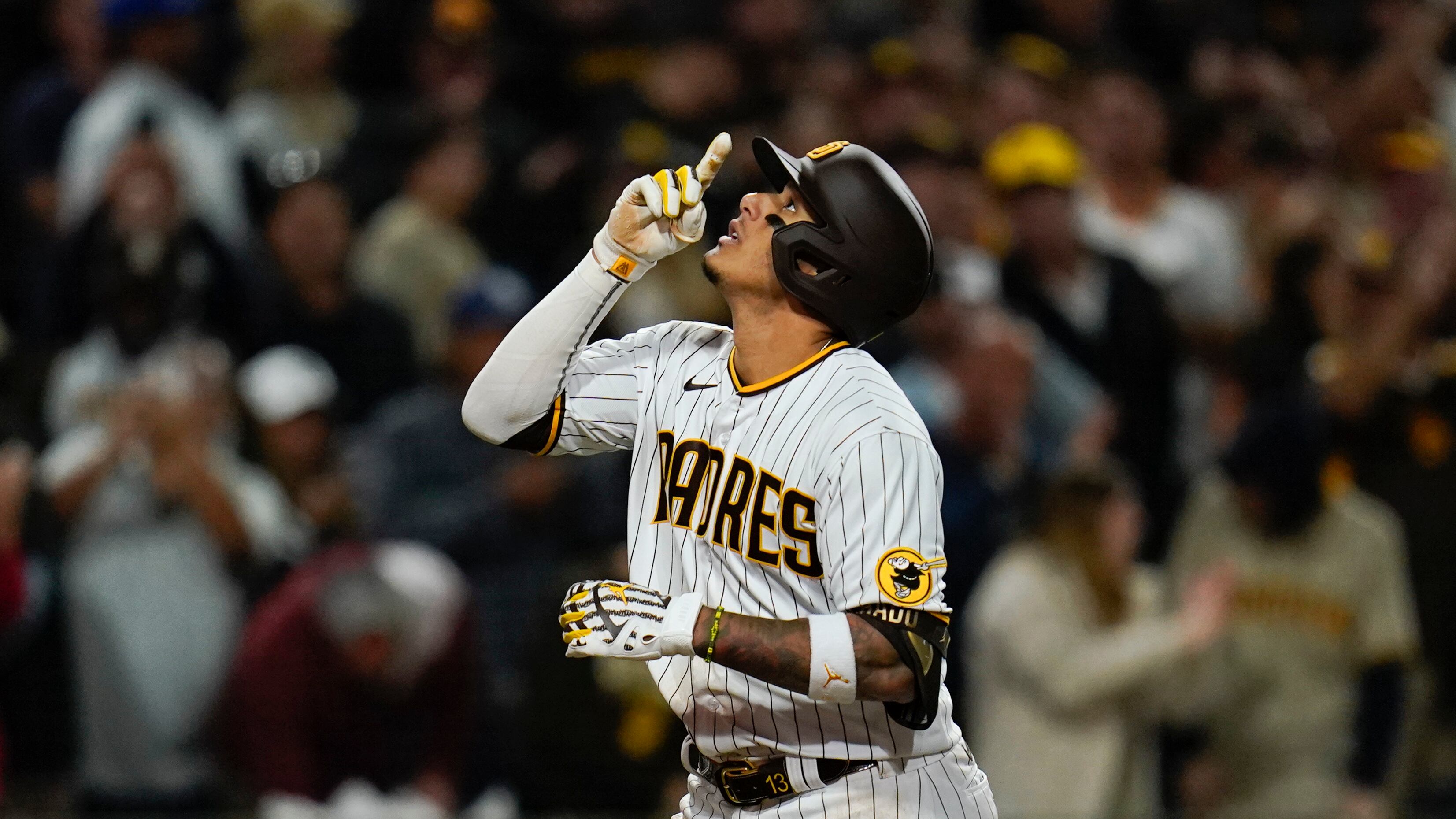 SAN DIEGO (AP) — Manny Machado conectó un jonrón y empató la mejor marca de su carrera, al batear cinco imparables, para que los Padres de San Diego arrollaran el jueves 12-1 a los Bravos de Atlanta, campeones de la última Serie Mundial.
