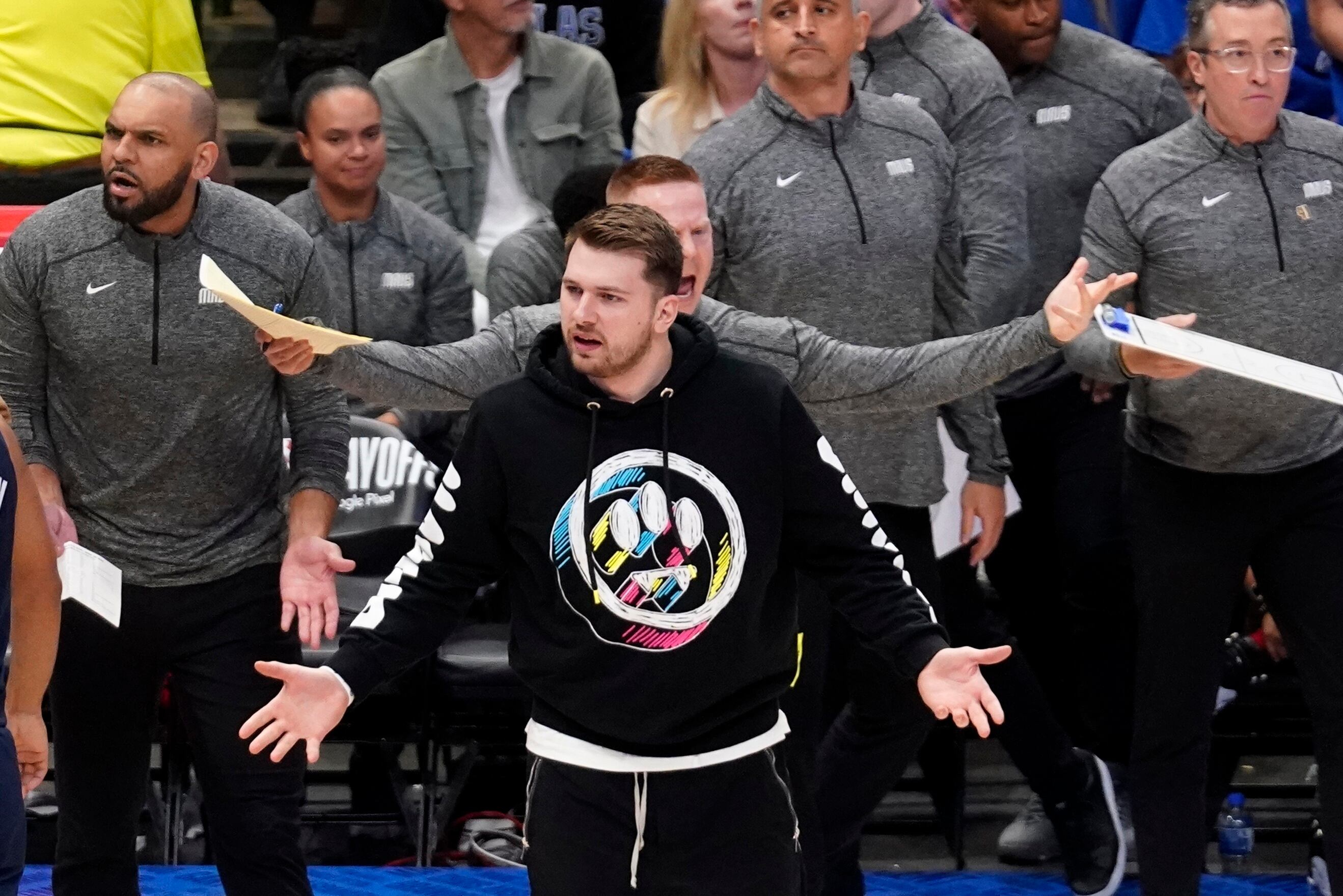 El juego 2 de la serie se celebra el lunes, ocho días después de que Doncic sufrió la lesión en el último partido de la temporada regular.