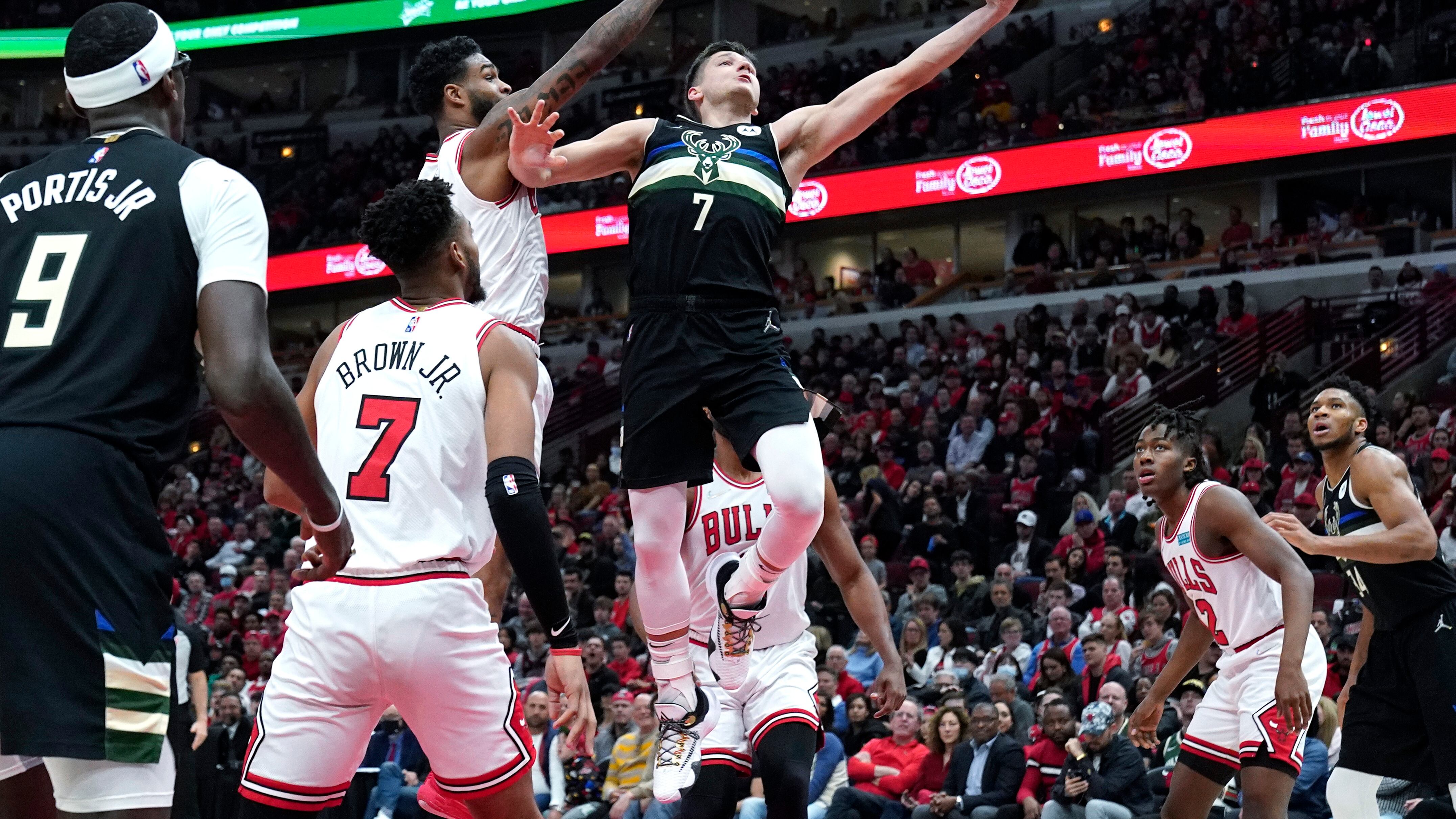 Después de sus partidos de local, Milwaukee silenció prácticamente desde el inicio a la estridente afición que presenció el primero juego de Chicago en la postemporada en el United Center en cinco años. Los Bucks llegaron a tener ventaja de 24 unidades en el segundo periodo y mantuvieron el control el resto del encuentro.
