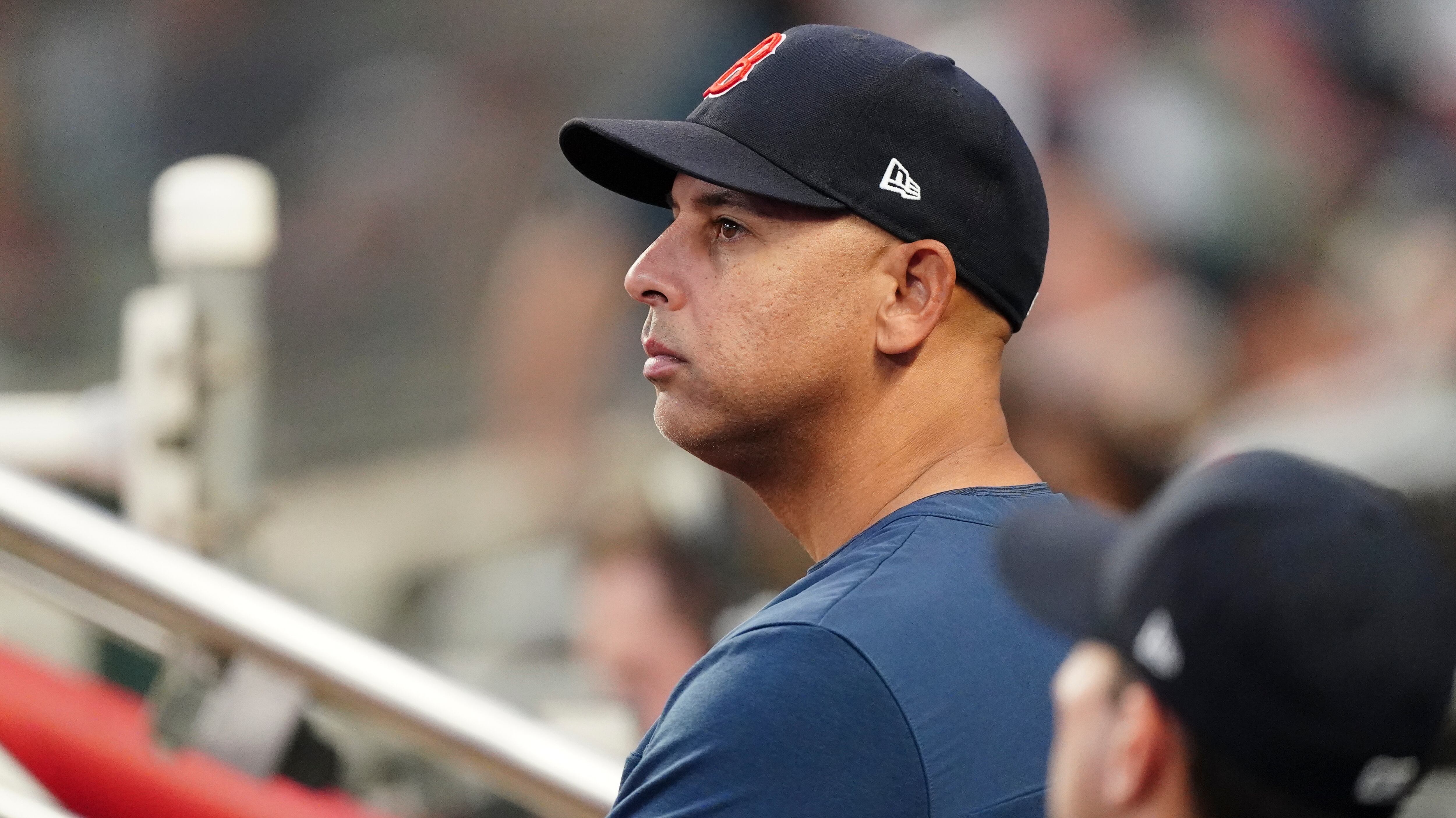 El puertorriqueño Alex Cora, manager de los Medias Rojas de Boston, observa desde la cueva durante un juego ante los Bravos de Atlanta, el martes 10 de mayo de 2022 (AP Foto/John Bazemore) (John Bazemore/AP)