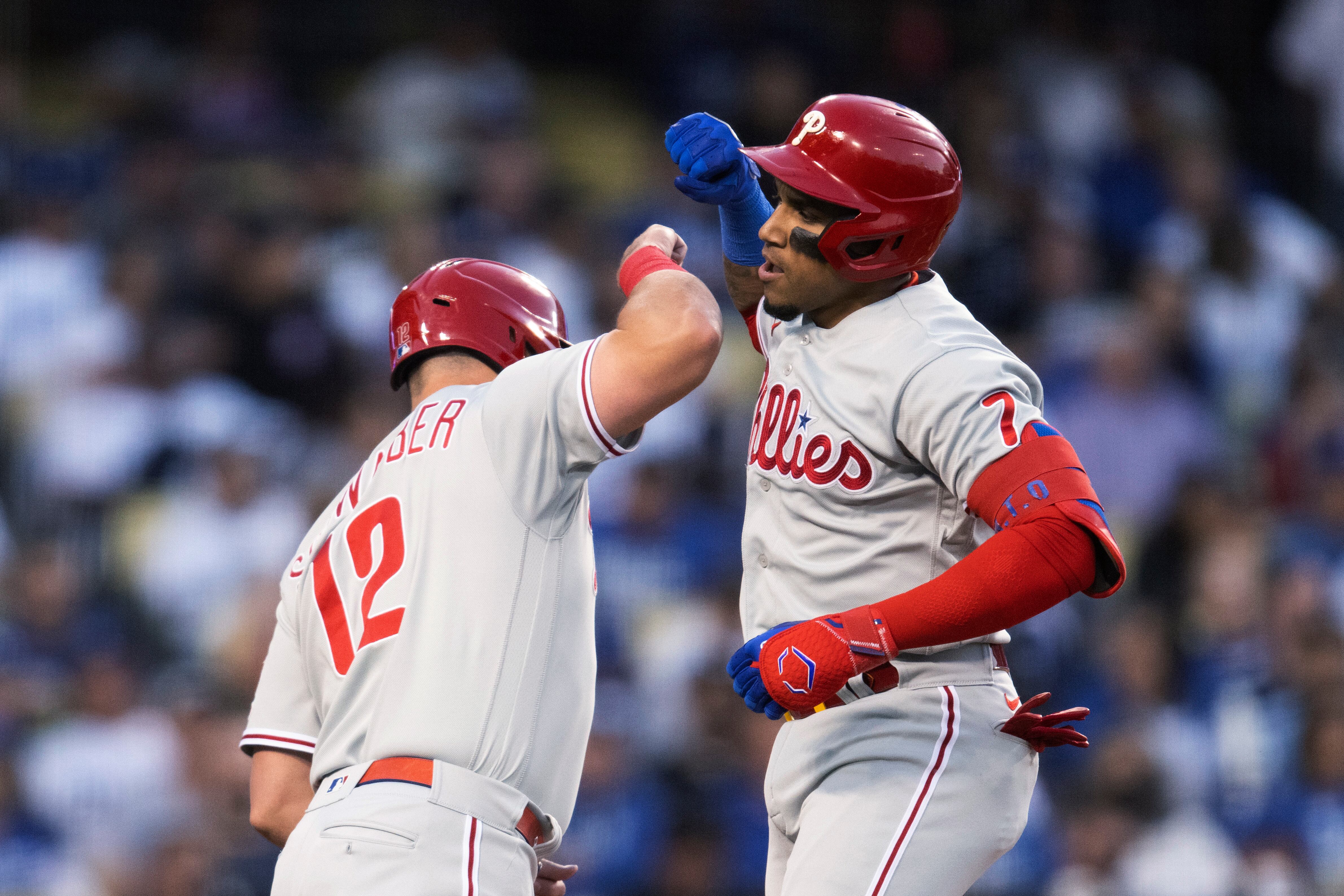 Por los Filis, el dominicano Jean Segura de 4-2, con dos anotadas. El panameño Johan Camargo de 3-1, con una anotada y tres remolcadas. El venezolano Odúbel Herrera de 1-1, con una anotada.