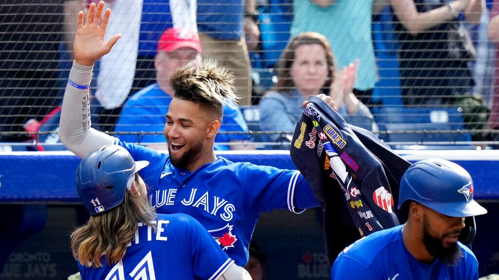 Por los Azulejos, los dominicanos Vladimir Guerrero Jr. de 4-0, Teoscar Hernández de 3-0, Santiago Espinal de 4-1, Raimel Tapia de 3-1 con una anotada. El mexicano Alejandro Kirk de 2-0. El cubano Lourdes Gurriel Jr. de 3-1.