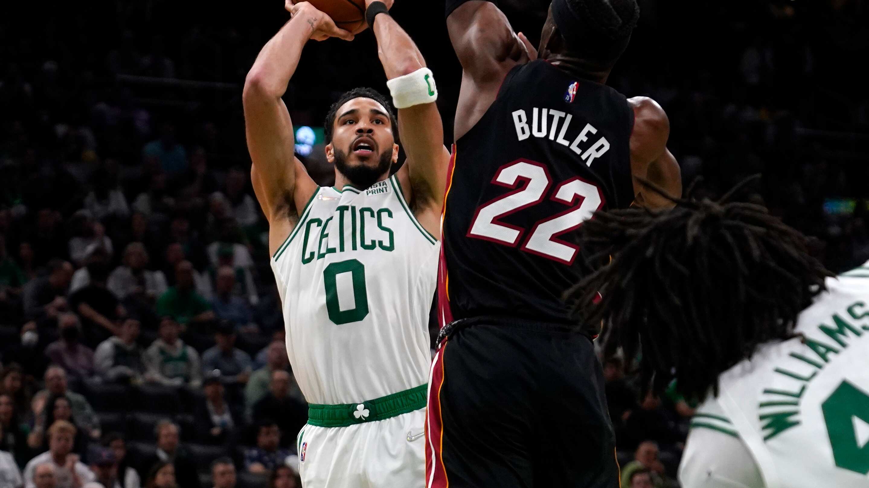 BOSTON (AP) — Jayson Tatum firmó 31 puntos y los Celtics de Boston tomaron el turno de de propinar una paliza al Heat de Miami cuando arremetieron temprano rumbo a a una victoria el lunes por 102-82 que niveló 2-2 la serie final de la Conferencia Este.