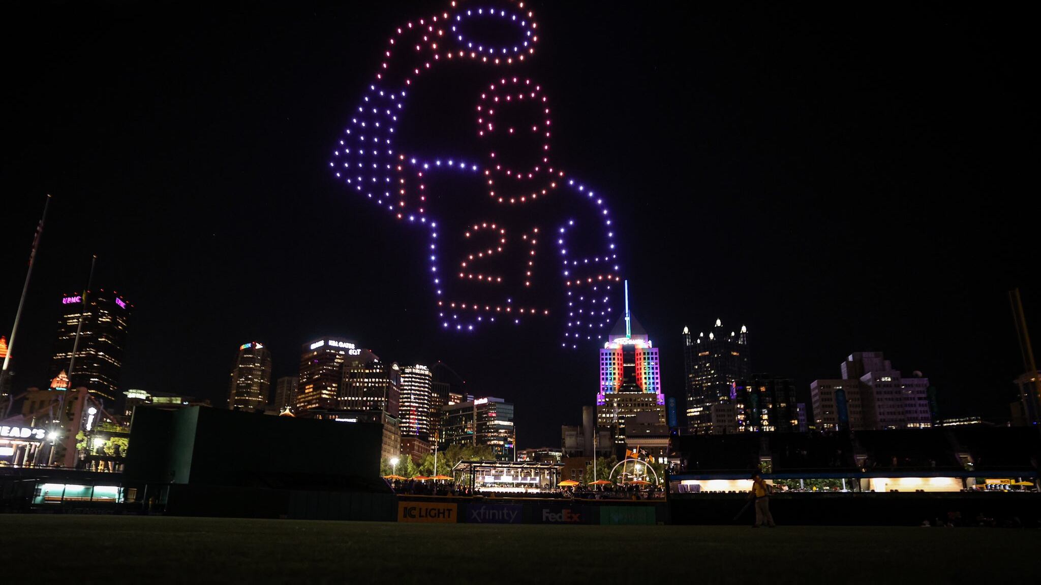 A través de un espectáculo con drones, el equipo proyectó la imagen de Clemente saludando al público luego de su hit 3 mil.