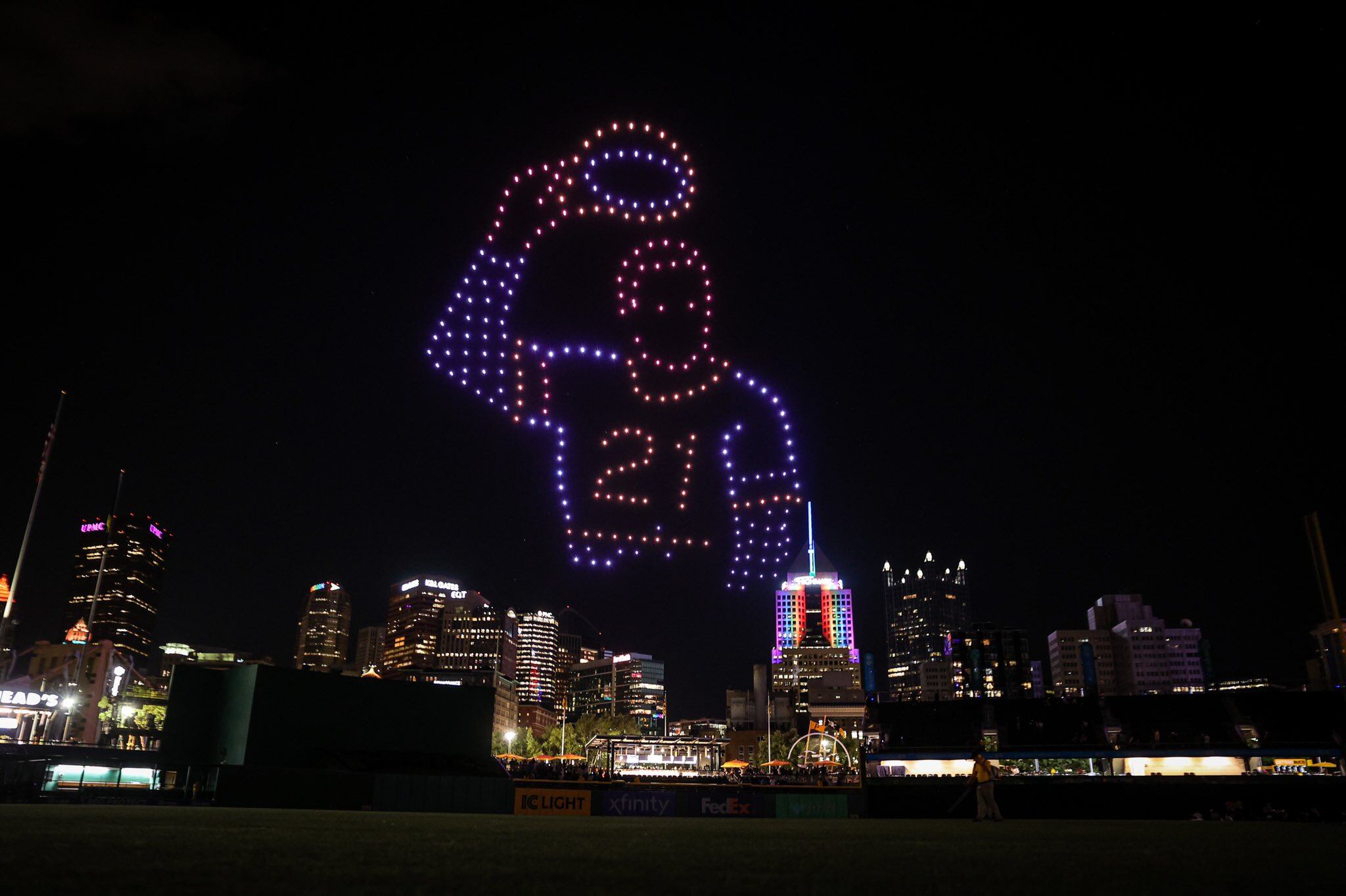A través de un espectáculo con drones, el equipo proyectó la imagen de Clemente saludando al público luego de su hit 3 mil.