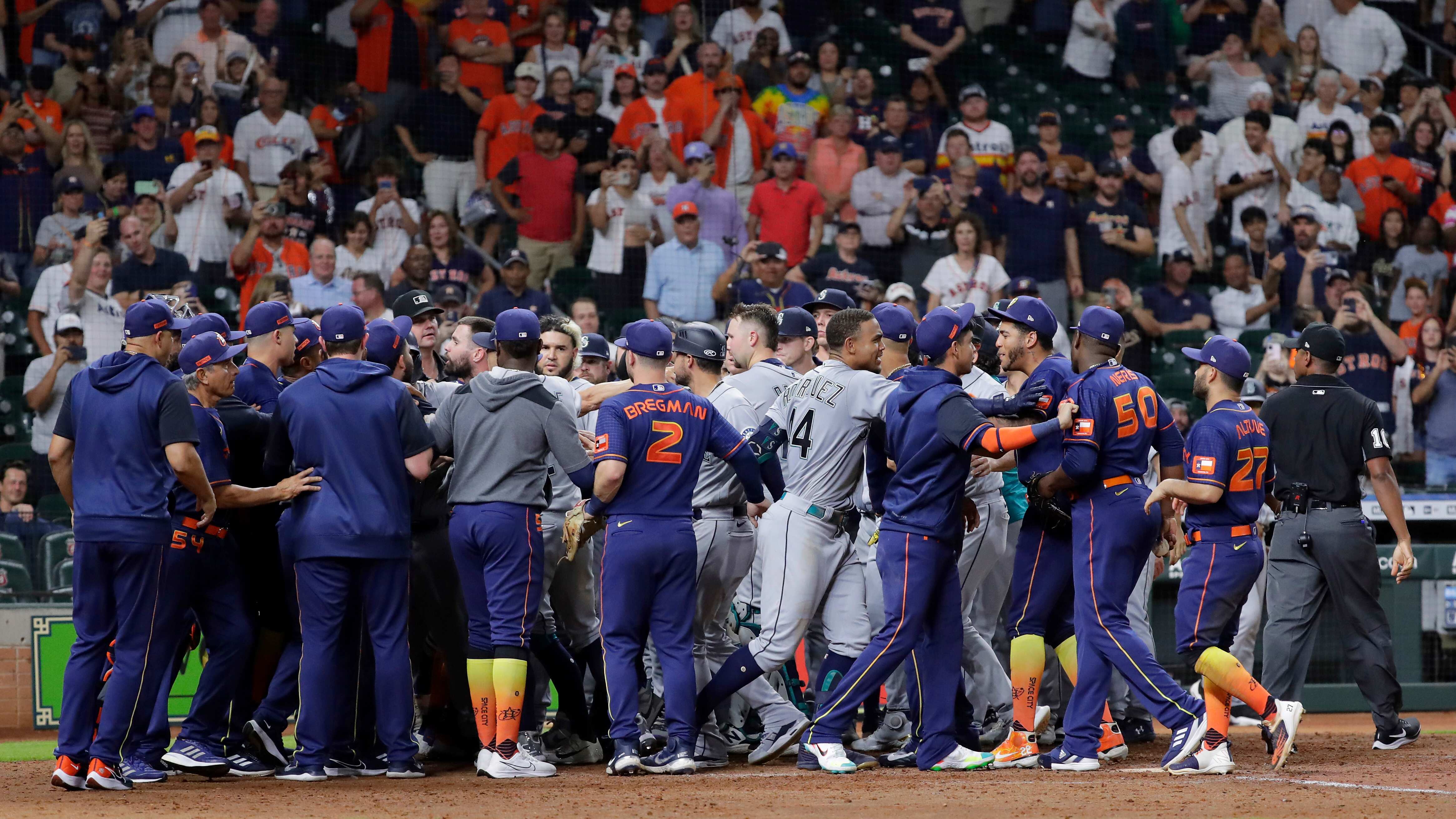 HOUSTON (AP) — El manager de los Marineros, Scott Servais, fue expulsado por su participación en una trifulca que vació las bancas en el noveno inning y Seattle superó el lunes 7-4 a los Astros de Houston, en un juego en el que Cal Raleigh batió su récord personal con cuatro remolcadas y Julio Rodríguez sacudió un tardío jonrón de dos carreras.