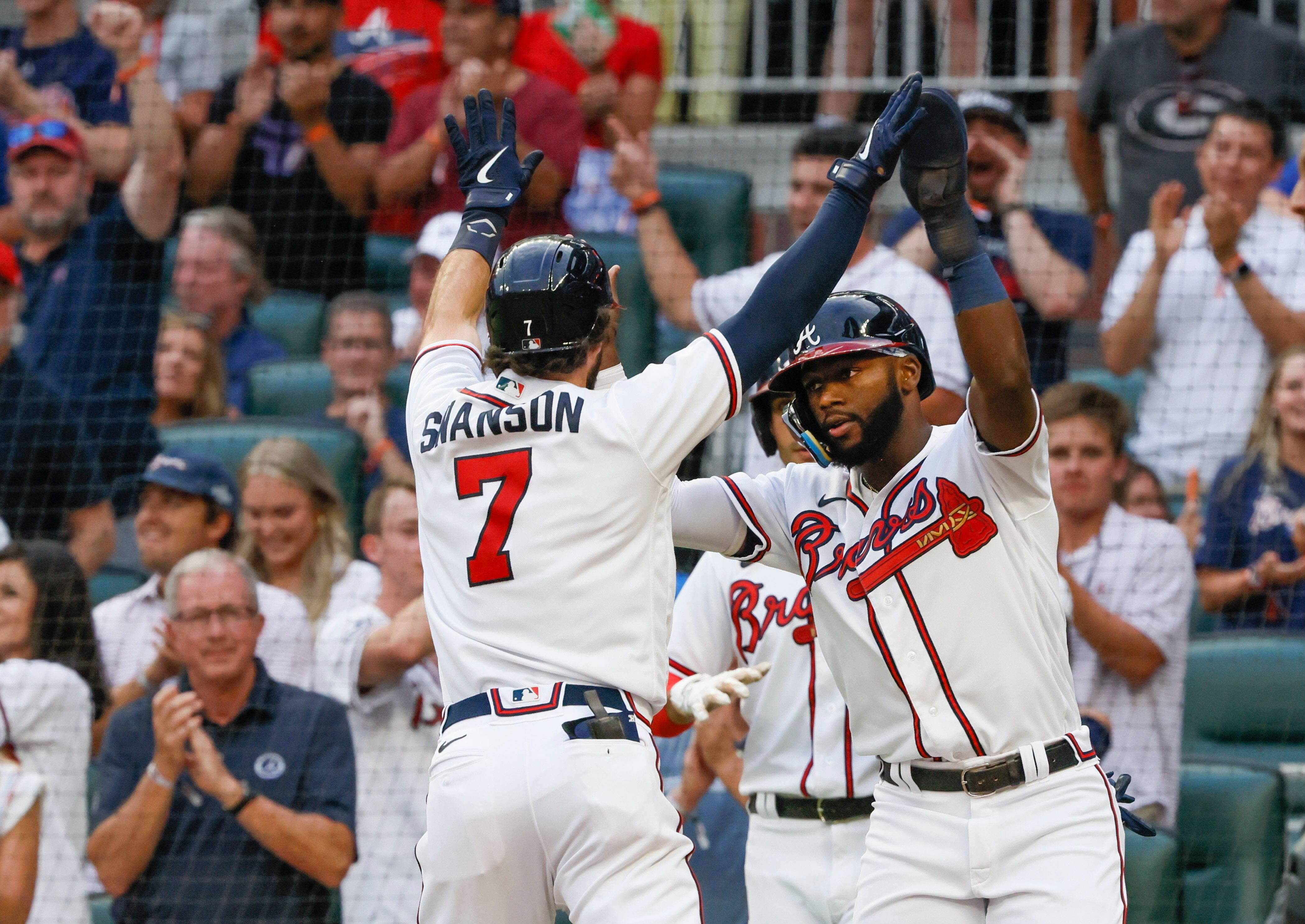 Travis d'Arnaud abrió la séptima con un doble al jardín izquierdo frente al venezolano Brusdar Graterol (2-3). Ozuna vino a continuación para sonar su 14to cuadrangular de la campaña, por todo el prado central.