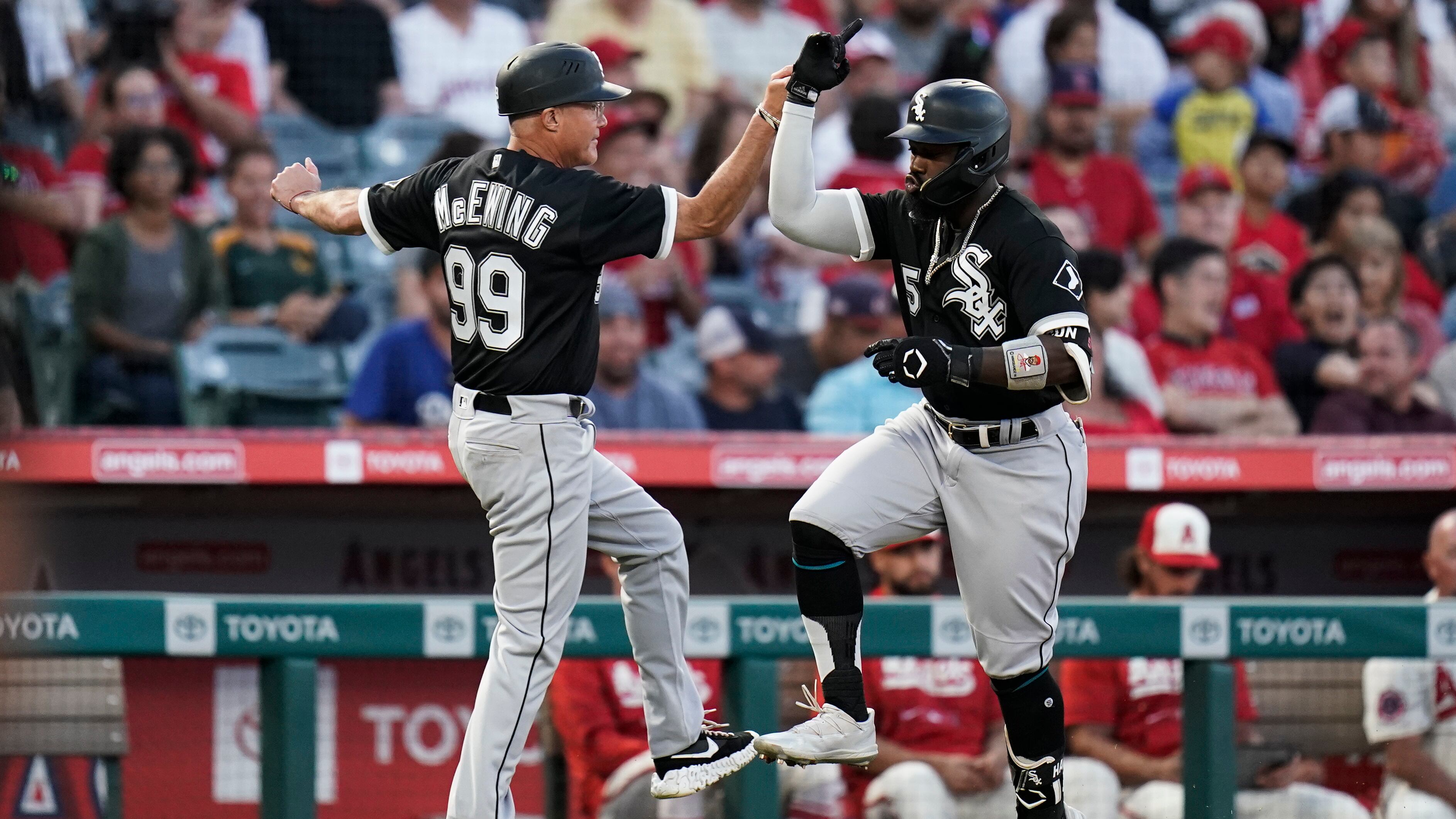 ANAHEIM, California, EE.UU. (AP) — Josh Harrison y Luis Robert sacudieron cuadrangulares en un quinto inning con cinco anotaciones de Chicago y los Medias Blancas batearon 17 hits el martes en su triunfo por 11-4 sobre los Angelinos de Los Ángeles.