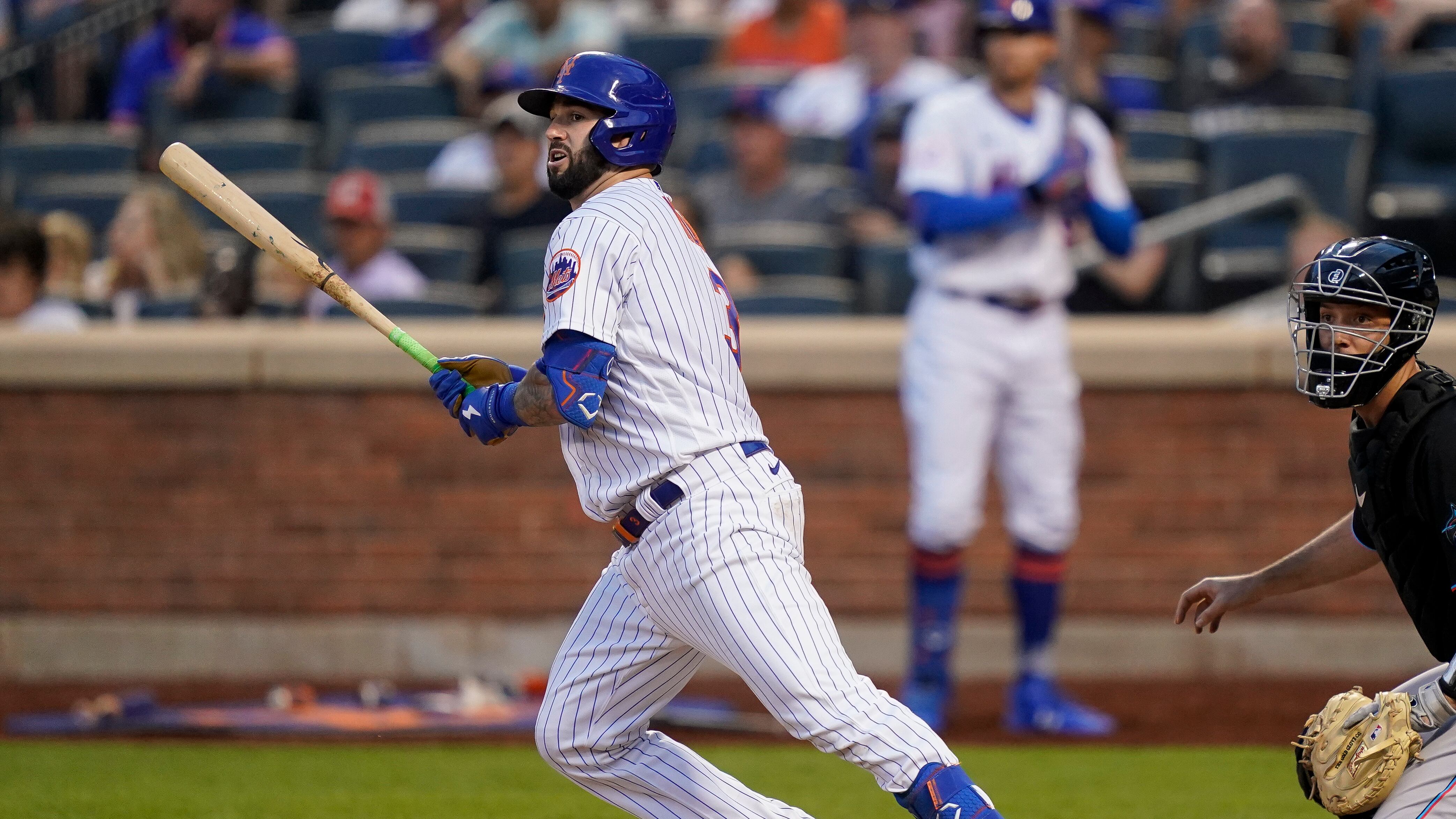 NUEVA YORK (AP) — Tomás Nido empató el encuentro mediante un doble, cuando había dos outs de la décima entrada, y aprovechó un mal tiro del relevista Tanner Scott para anotar la carrera con que los Mets de Nueva York superaron el sábado 5-4 a los Marlins de Miami.