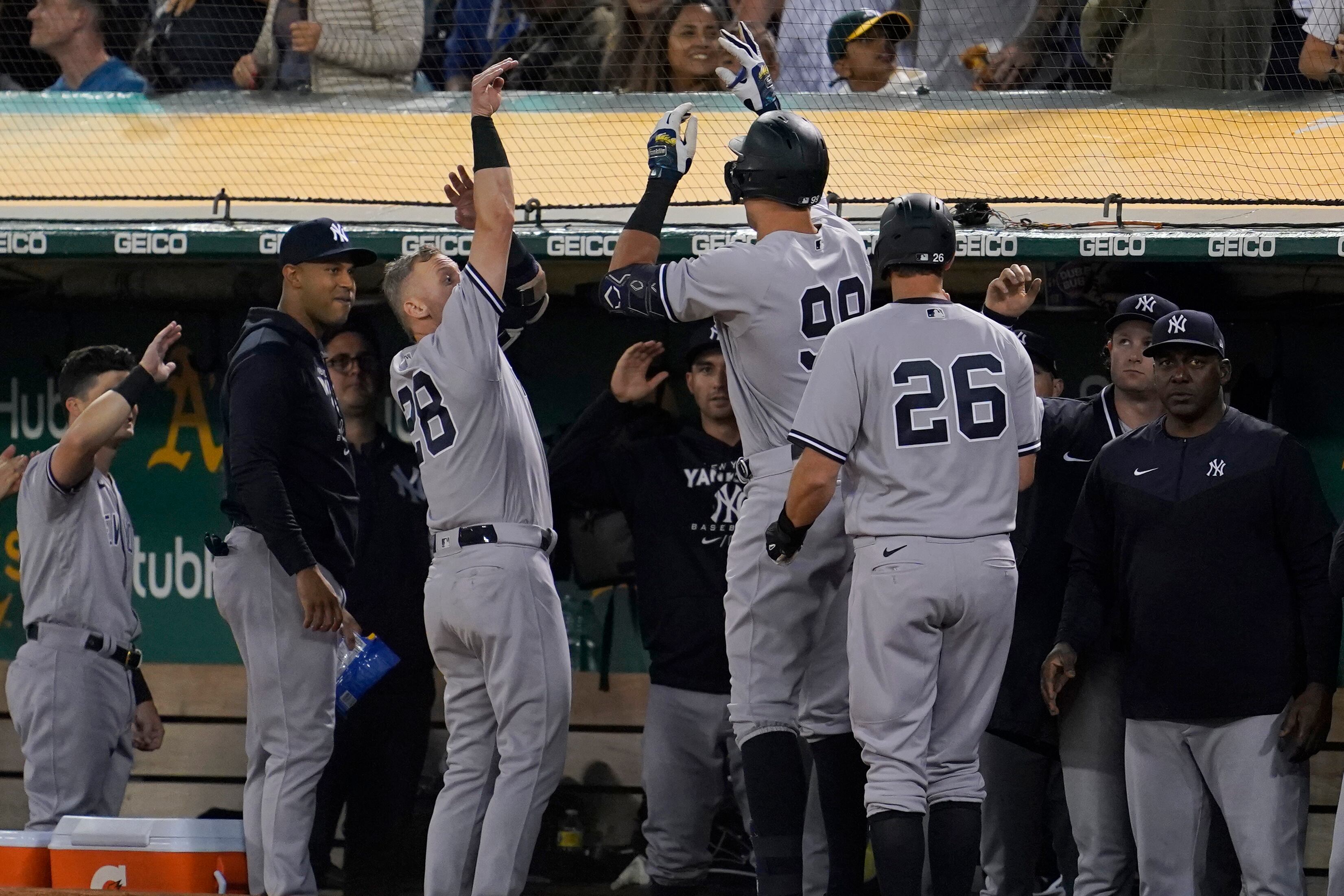 OAKLAND, California, EE.UU. (AP) — Gerrit Cole abanicó a 11 en su primera victoria desde el 17 de julio, Aaron Judge disparó un jonrón de tres carreras, el 49no del año para él y el 200mo para los Yanquis, y Nueva York se impuso el viernes por 3-2 a los Atléticos de Oakland.