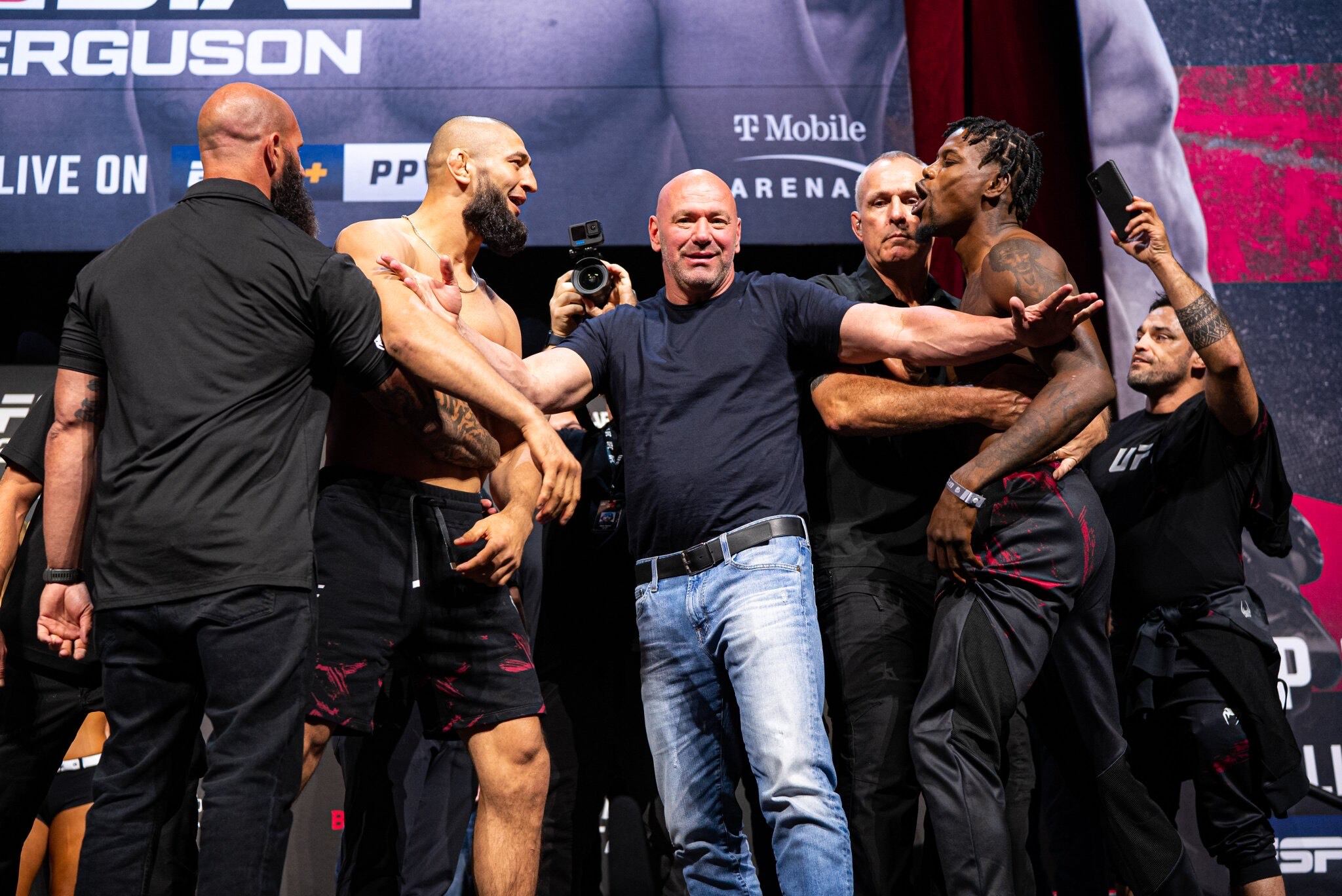 Este tuvo que cancelar la conferencia de prensa del mencionado evento por varios altercados entre peleadores y sus respectivos equipos. Ya lo hablamos, recuerden el chisme de la pelea tras bastidores en la conferencia de prensa. La patada frontal de Khamzat a Kevin Holland y el resto del caos. El viernes en el pesaje del evento Khamzat “Borz” Chimaev parte de lo que se supone iba a ser el combate estelar no dio el peso acordado para un combate de la división welter (170lbs.).