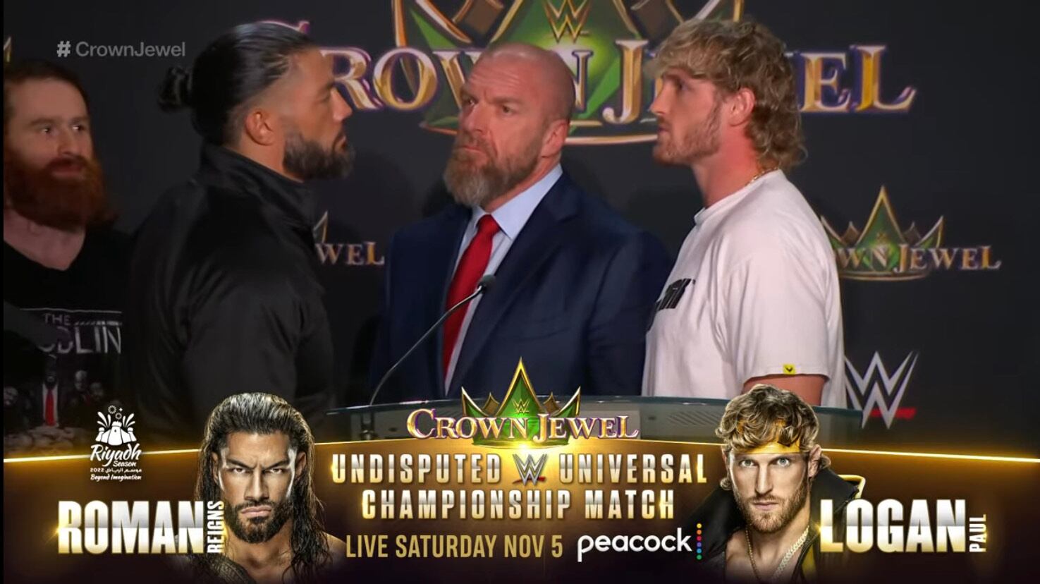 En la misma, Triple H, jefe creativo de la WWE y director de contenido de la empresa, confirmó que “The Maverick”, Logan Paul retará a “The Tribal Chief”, Roman Reigns, en una lucha por el Campeonato Universal Unificado de la WWE. Dicha lucha será el combate estelar del PLE (PPV) Crown Jewel. Esto será el 5 de noviembre en Riyadh, Arabia Saudita. El público presente en la conferencia de prensa quedó atónito ante el anuncio.