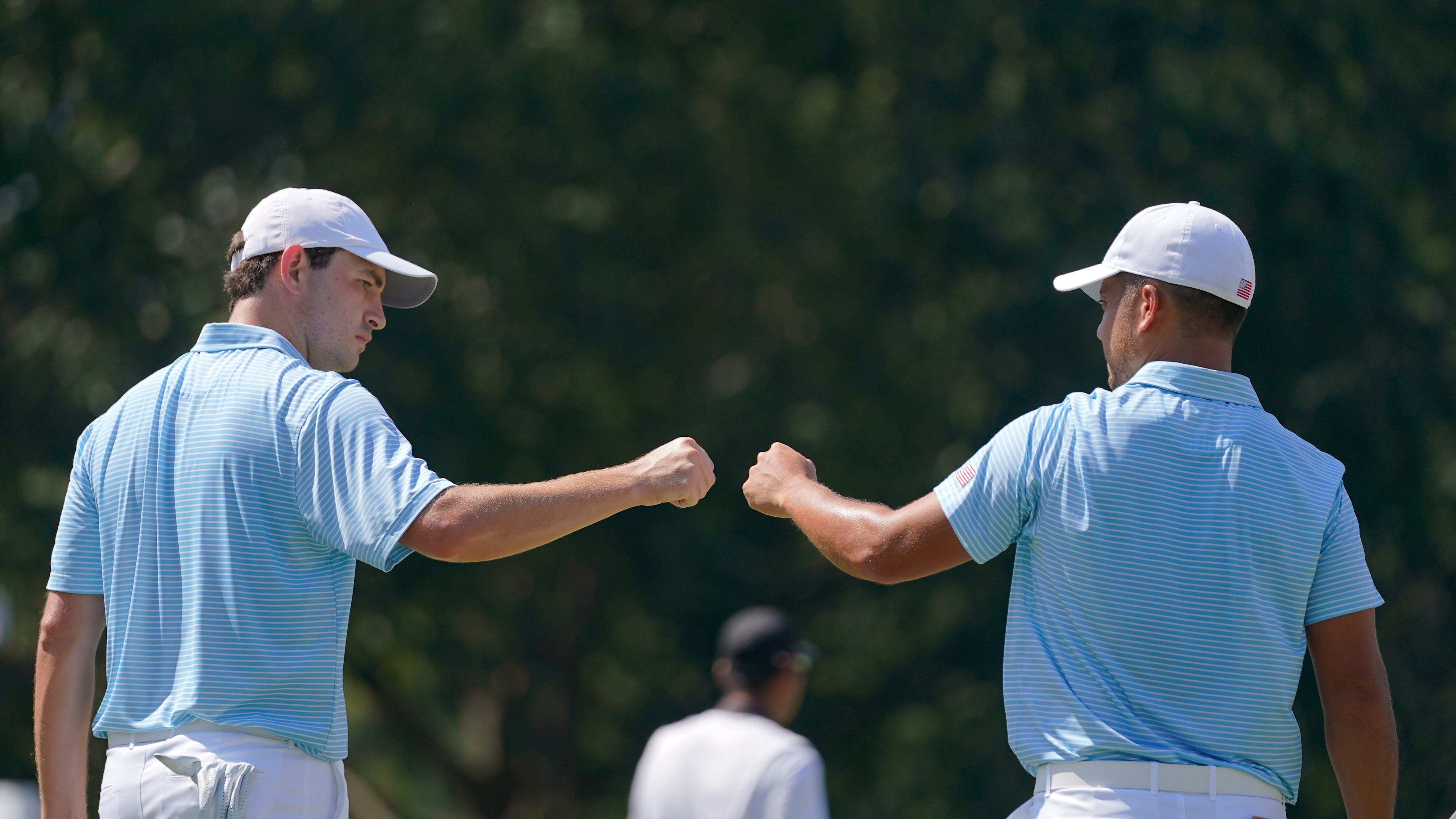 “Anoche les dije a los muchachos que necesitábamos marcar la pauta, nosotros y el duelo de J.T. y Jordan, y lo hicimos”, declaró Schauffele. “Jugar este formato en un día como el de hoy y terminar sin bogeys era exactamente lo que necesitábamos”.