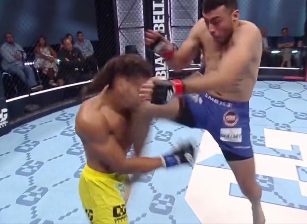 El nacido en la ciudad de Hermosillo, Sonora, aprovechó un descuido de su rival y en pleno primer episodio conectó un rodillazo en el rostro de su rival jamaicano.