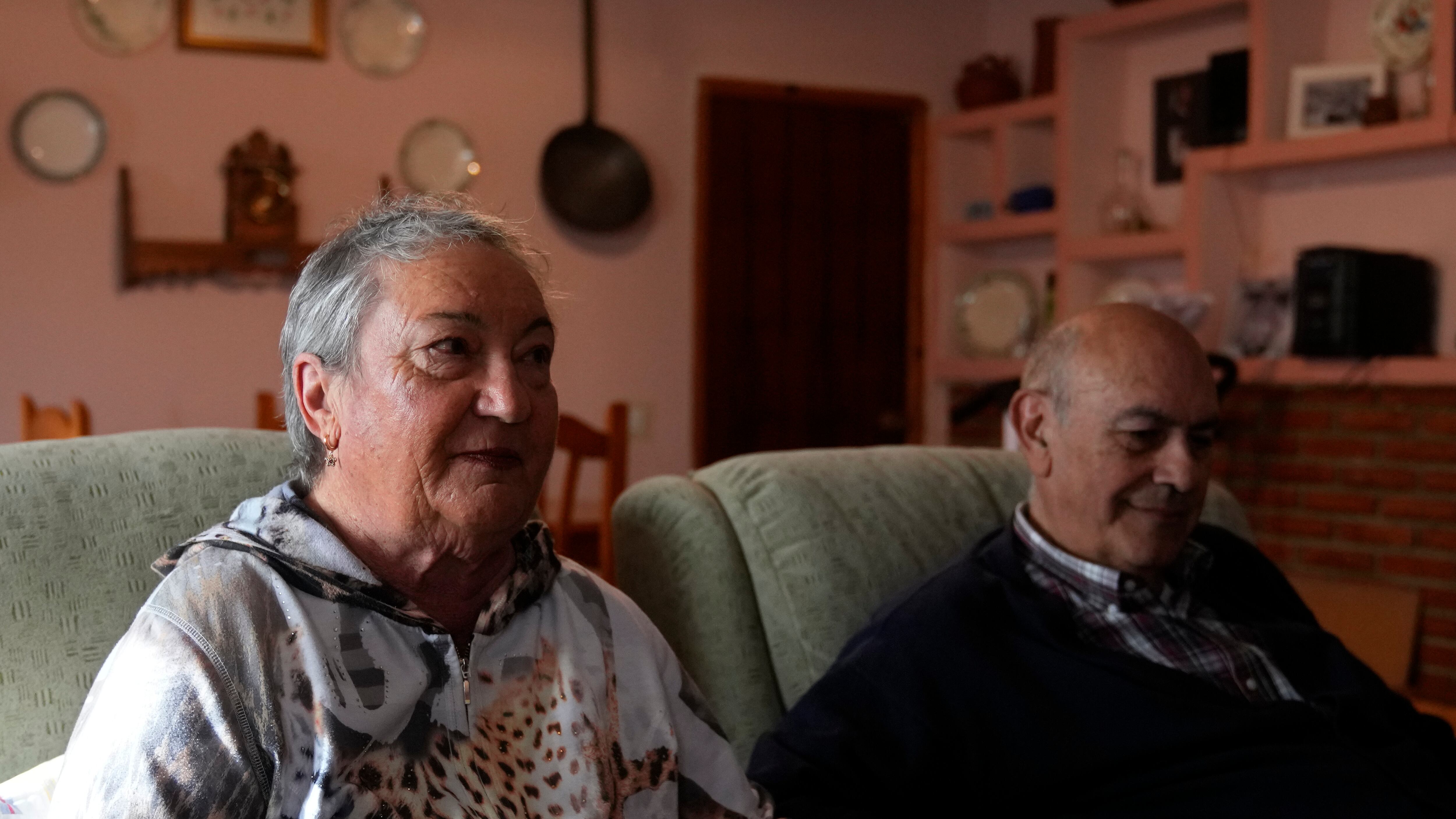 Los padres de Santiago Sánchez Cogedor, Celia Cogedor, a la izquierda, y Santiago Sánchez, hablan durante una entrevista con The Associated Press en su casa de Henches, España, el lunes 24 de octubre de 2022. (AP Foto/Paul White) AP (Paul White/AP)