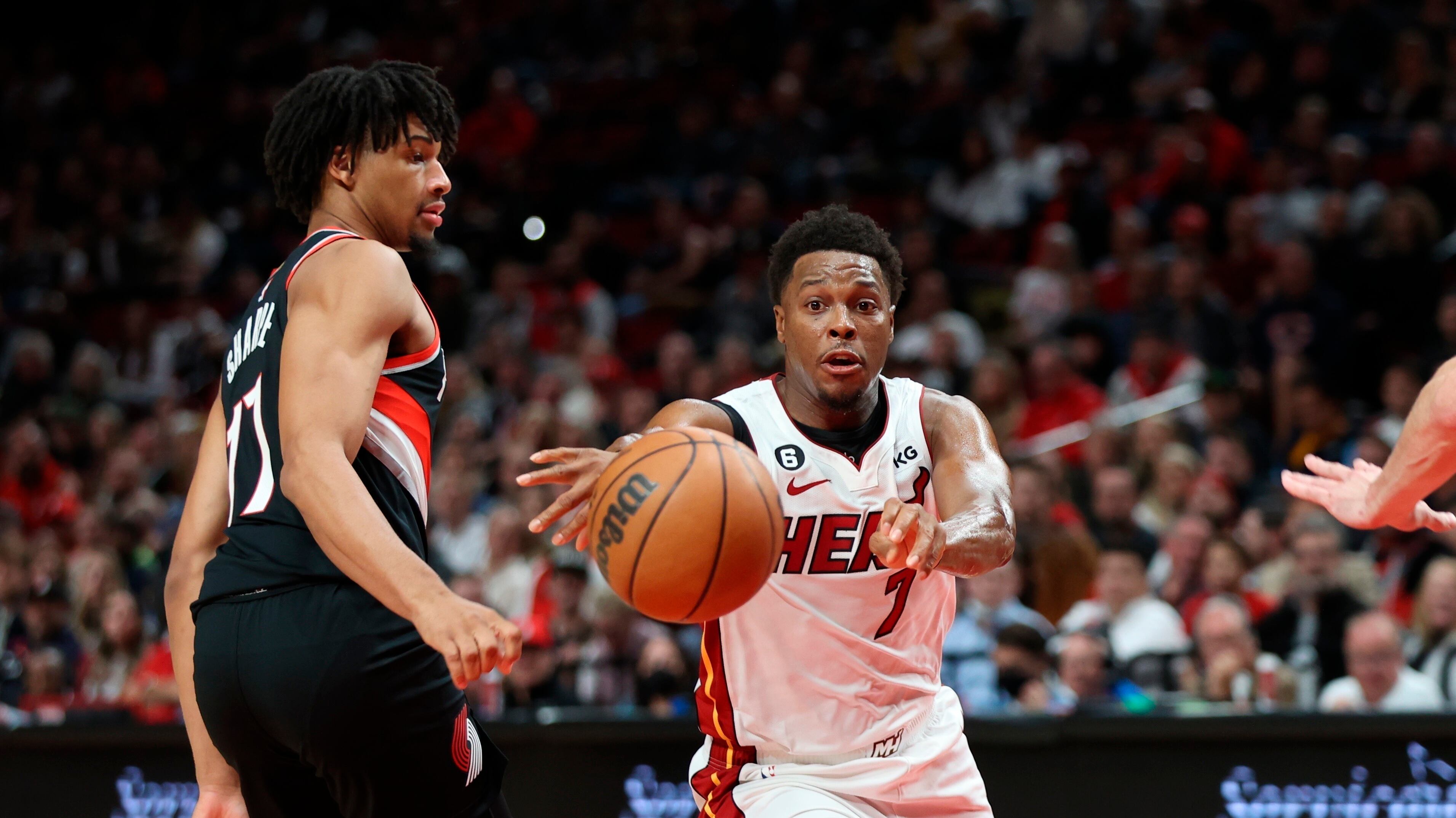 La primera mitad estuvo ajustada. Jerami Grent encestó un triple que puso a los Blazers 44-36 arriba, pero Tyler Herro respondió con otro triple para los visitantes.