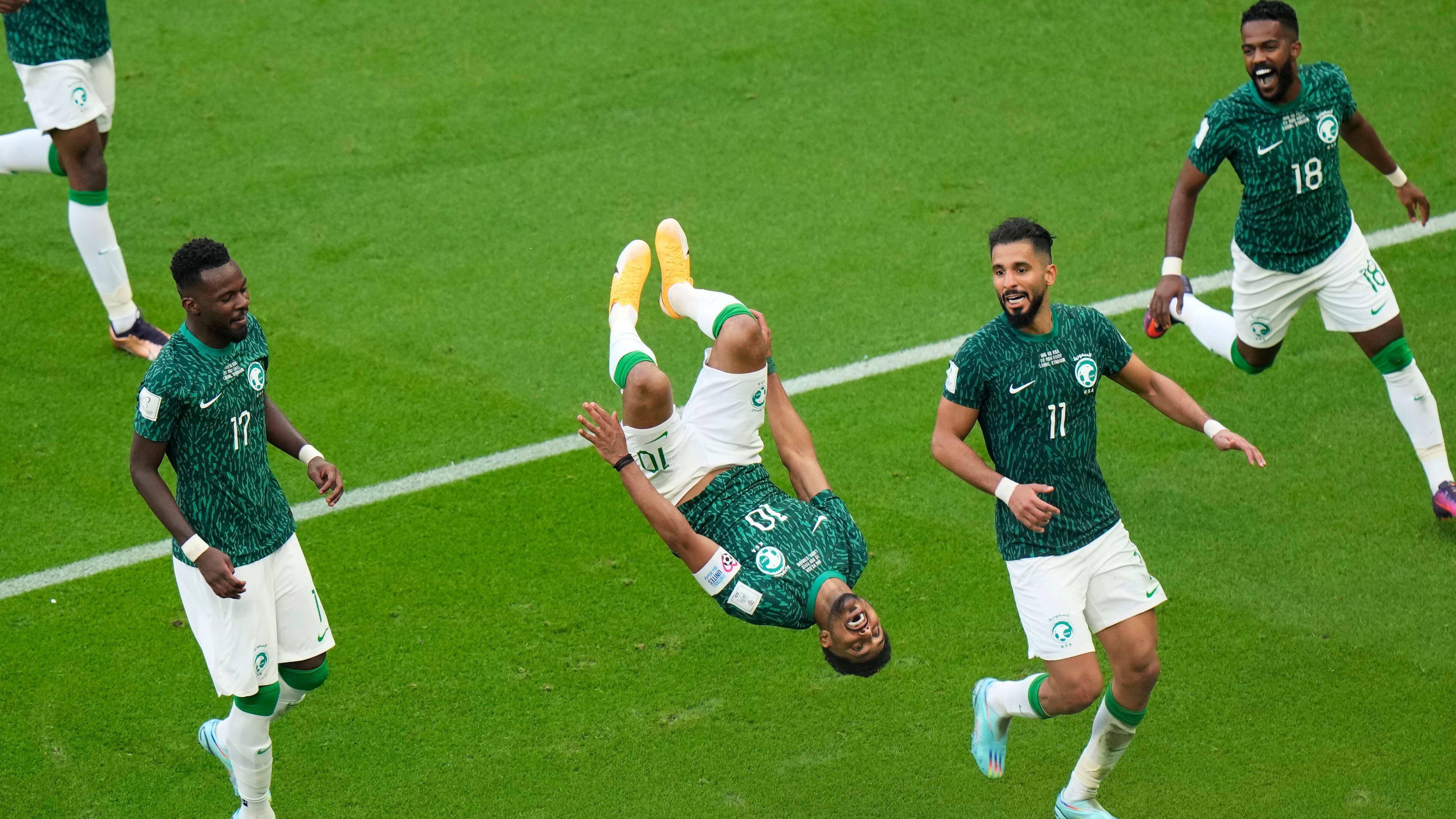 Aldawsari anotó el gol del triunfo a los 53 minutos, celebrándolo con una voltereta para adelante y atrás.