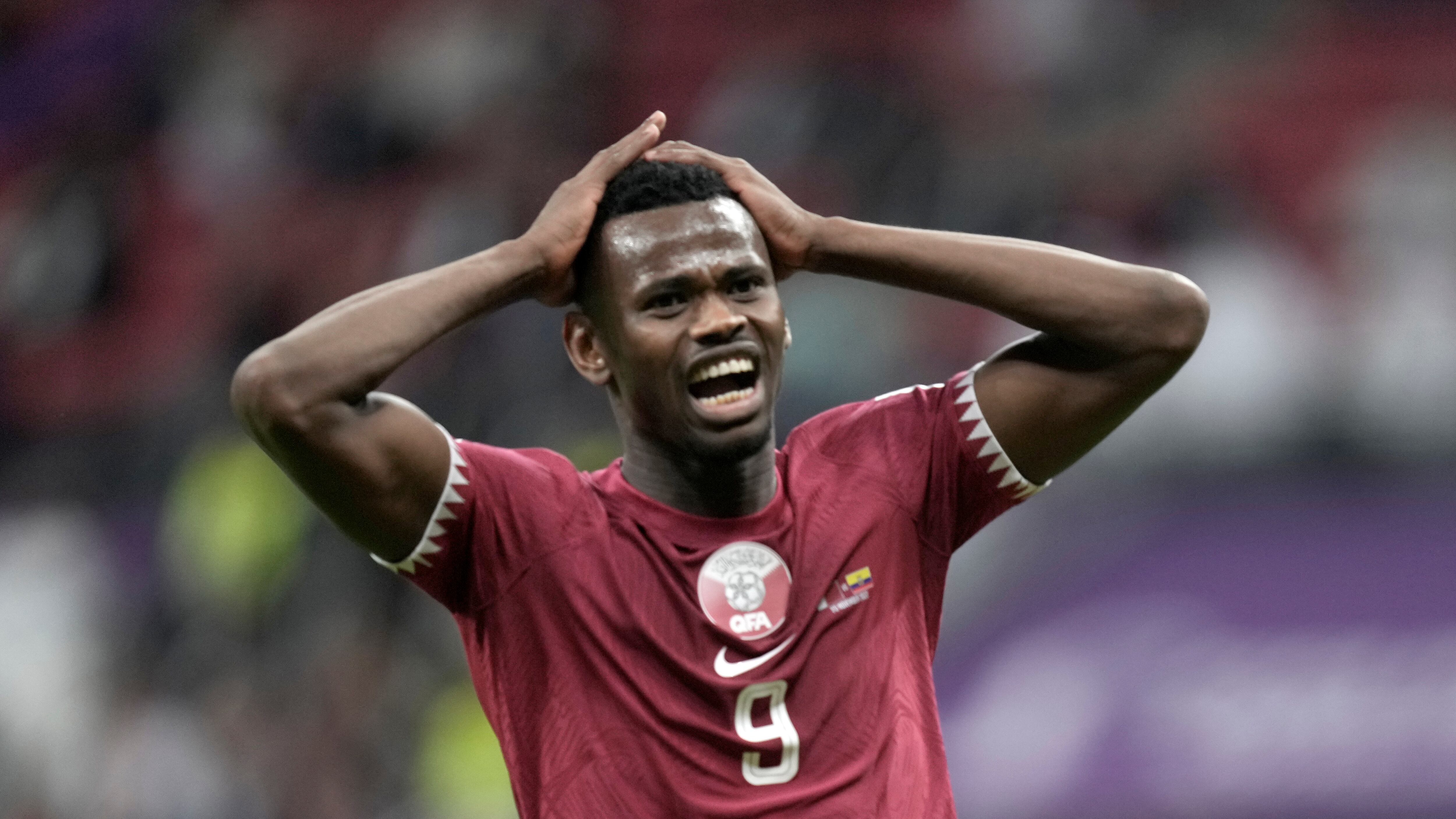 Mohammed Muntari, de Qatar, reacciona tras fallar una ocasión de gol durante el juego del Grupo A del Mundial que enfrentó a la anfitriona con Ecuador, en el estadio Al Bayt, en Jor, el 20 de noviembre de 2022. (AP Foto/Ariel Schalit) AP (Ariel Schalit/AP)