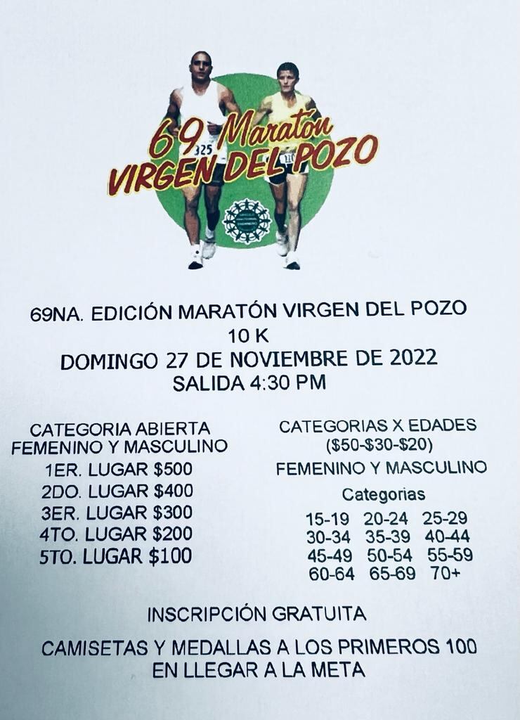 El Círculo Fraternal Sabaneño, organizador del Maratón Virgen del Pozo 10k en Sabana Grande dio a conocer que la carrera más antigua de Puerto Rico está pautada para llevarse a cabo para el próximo domingo, 27 de noviembre de 2022, con el disparo de salida a las 4:30 de la tarde.