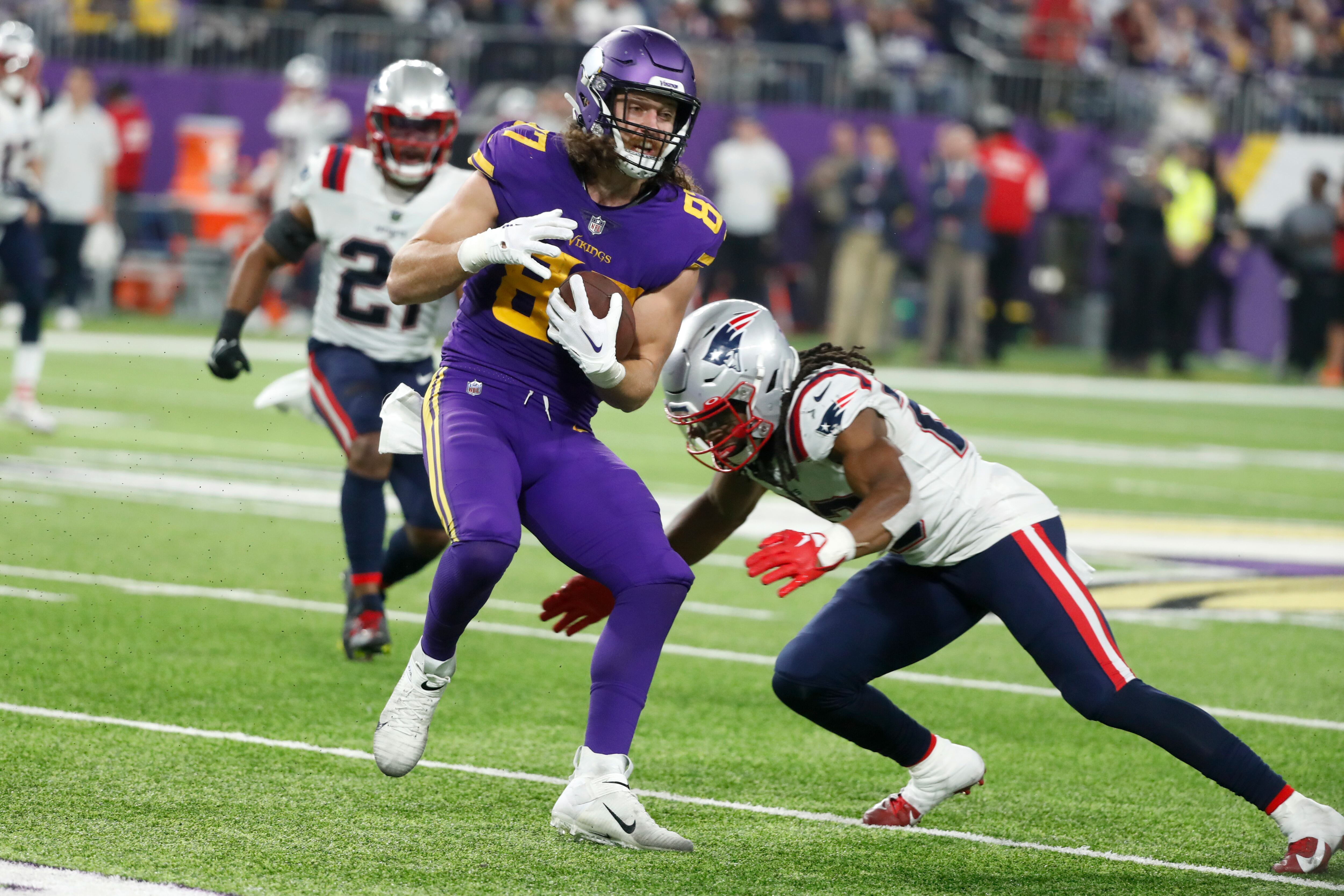 Jones completó con Hunter Henry un pase abierto de 37 yardas para touchdown en la segunda mitad que puso a los Patriots arriba 23-16 al comienzo del tercer periodo. Los Vikings respondieron con una anotación de Kene Nwangwu en una devolución a una patada de 97 yardas.