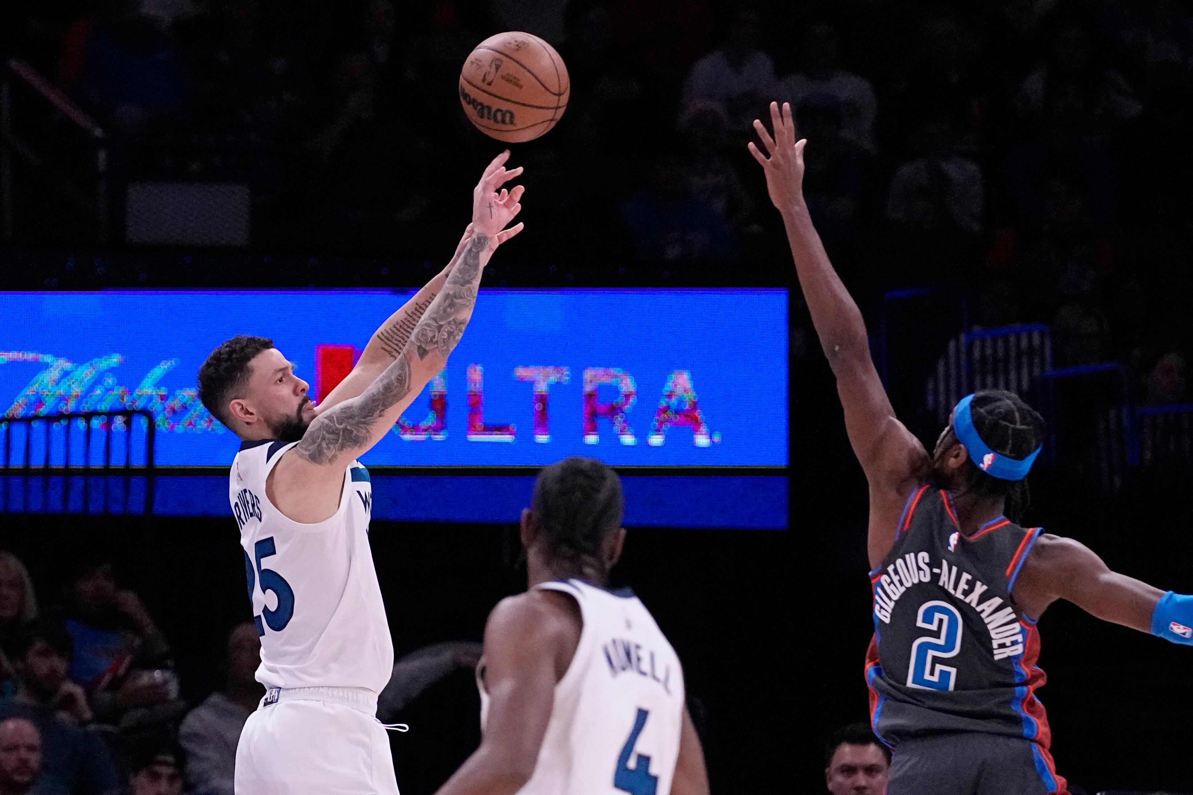 El juego permaneció cerrado en el cuarto periodo. Reid falló el primero de dos tiros libres con 4,9 segundos para darle la ventaja a los Timberwolves 112-109. Gilgeous-Alexander fue fauleado antes de intentar su triple. Embocó su primer tiro libre y falló el segundo de forma intencional, pero al Thunder le marcaron falta por violación de carril.