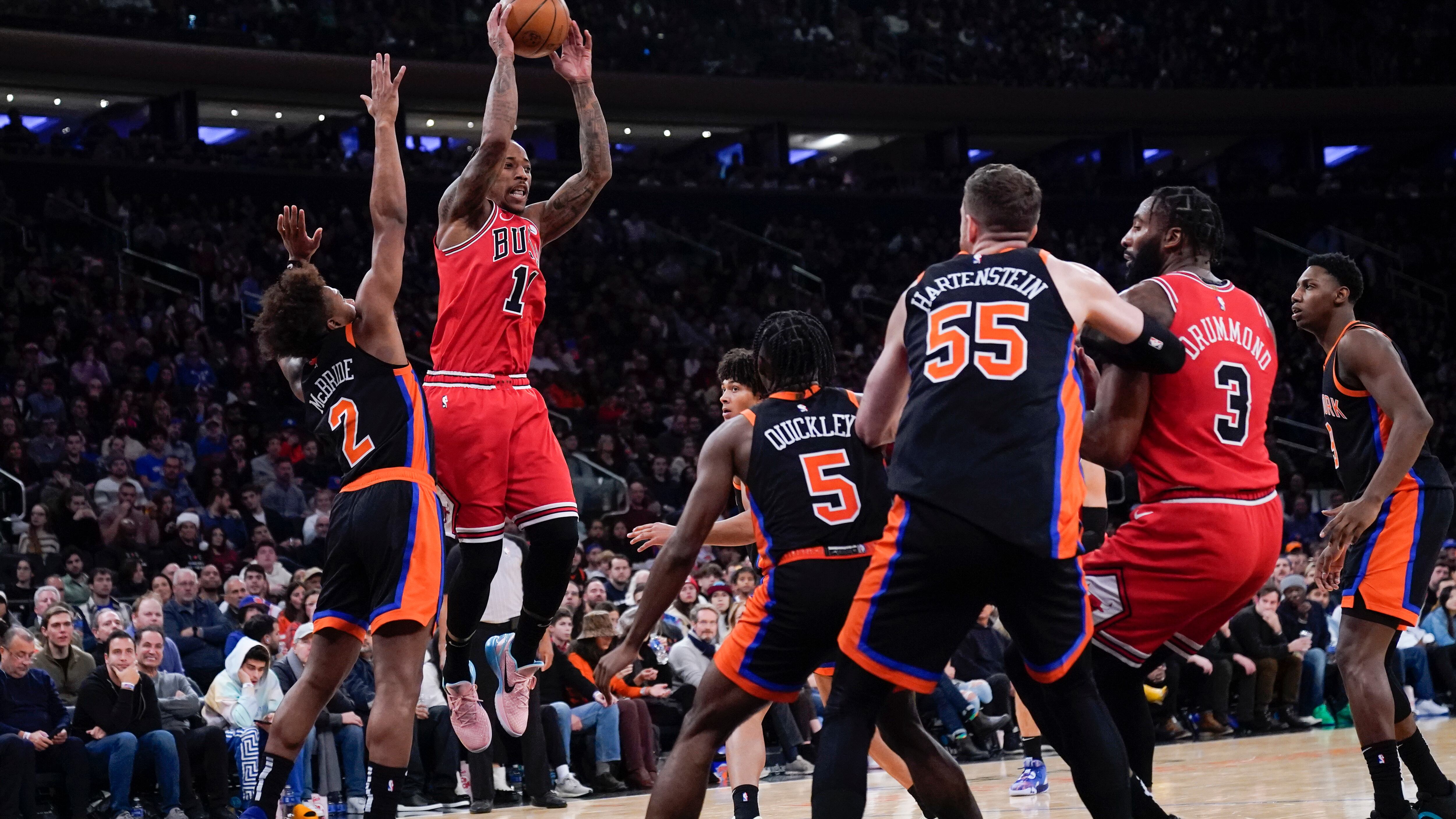NUEVA YORK (AP) — El tiro a distancia de DeMar DeRozan a menos de un segundo del final le dio la victoria por 118-117 a los Bulls de Chicago sobre los Knicks de Nueva York el viernes.