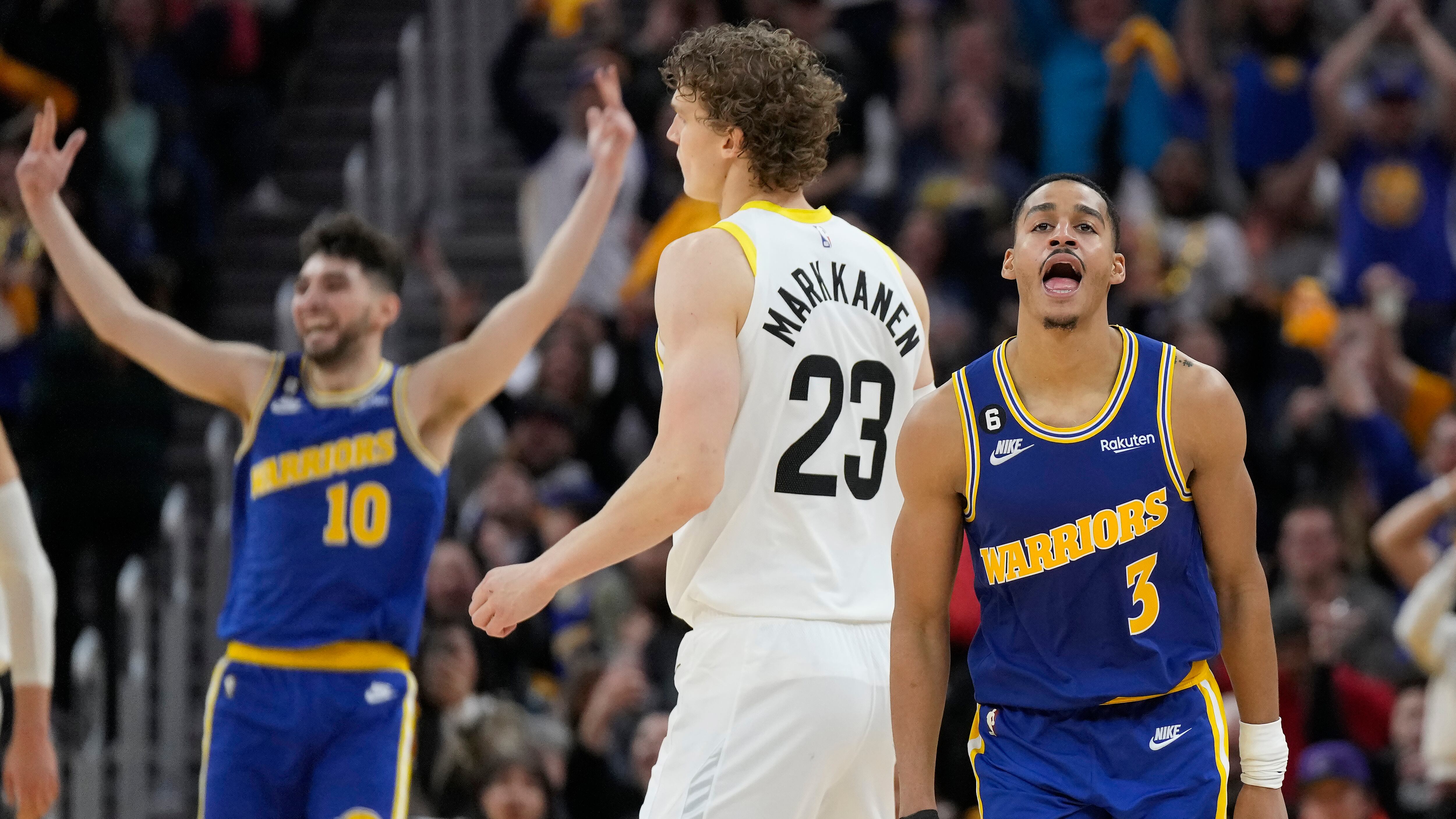 Lauri Markkanen anotó 29 puntos y tuvo siete triples y una temporada mejor 16 rebotes para el Jazz. Un triple de Jordan Clarkson a falta de 1:37 para el final puso el partido a un punto, antes de que Poole anotara instantes después.