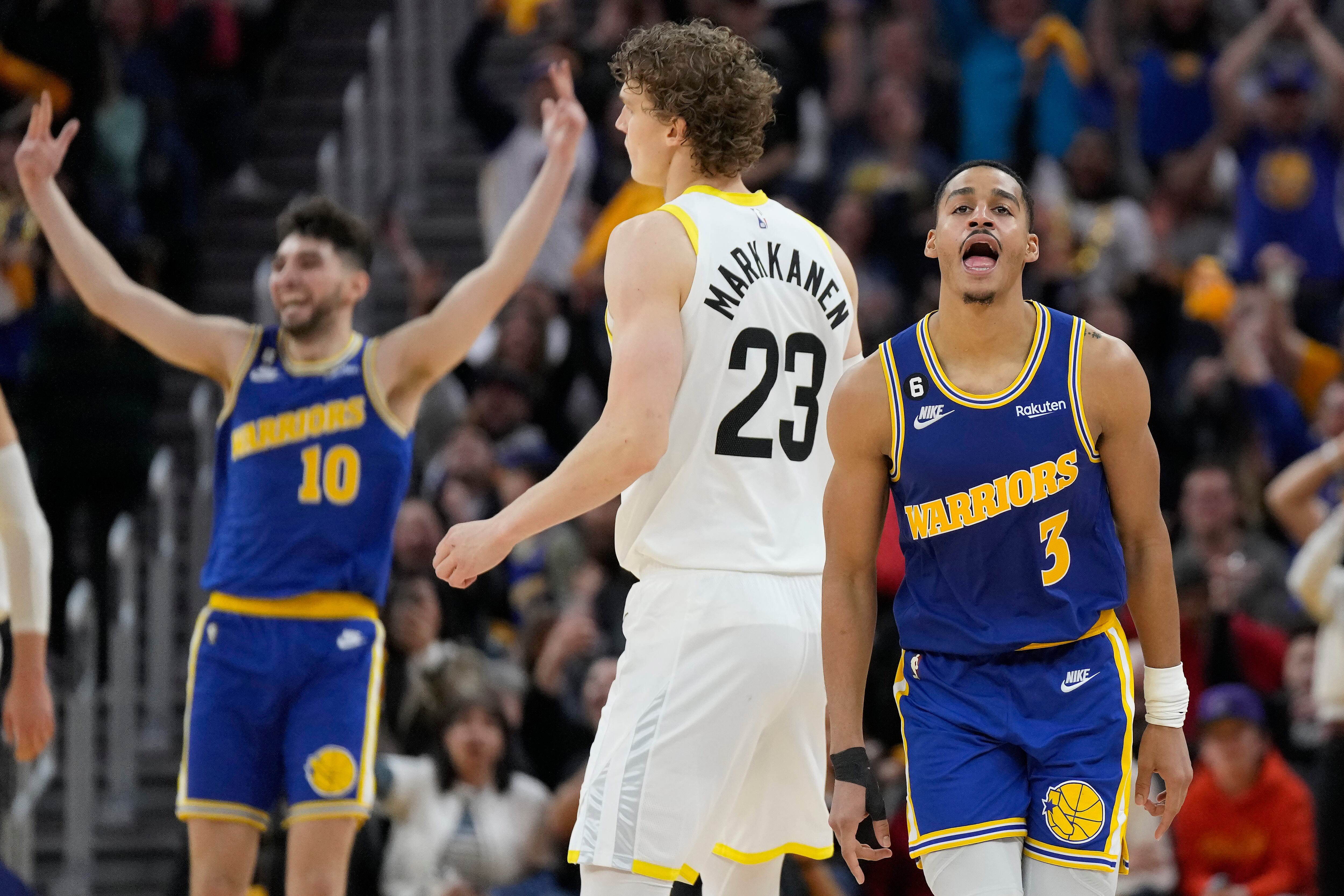 Lauri Markkanen anotó 29 puntos y tuvo siete triples y una temporada mejor 16 rebotes para el Jazz. Un triple de Jordan Clarkson a falta de 1:37 para el final puso el partido a un punto, antes de que Poole anotara instantes después.