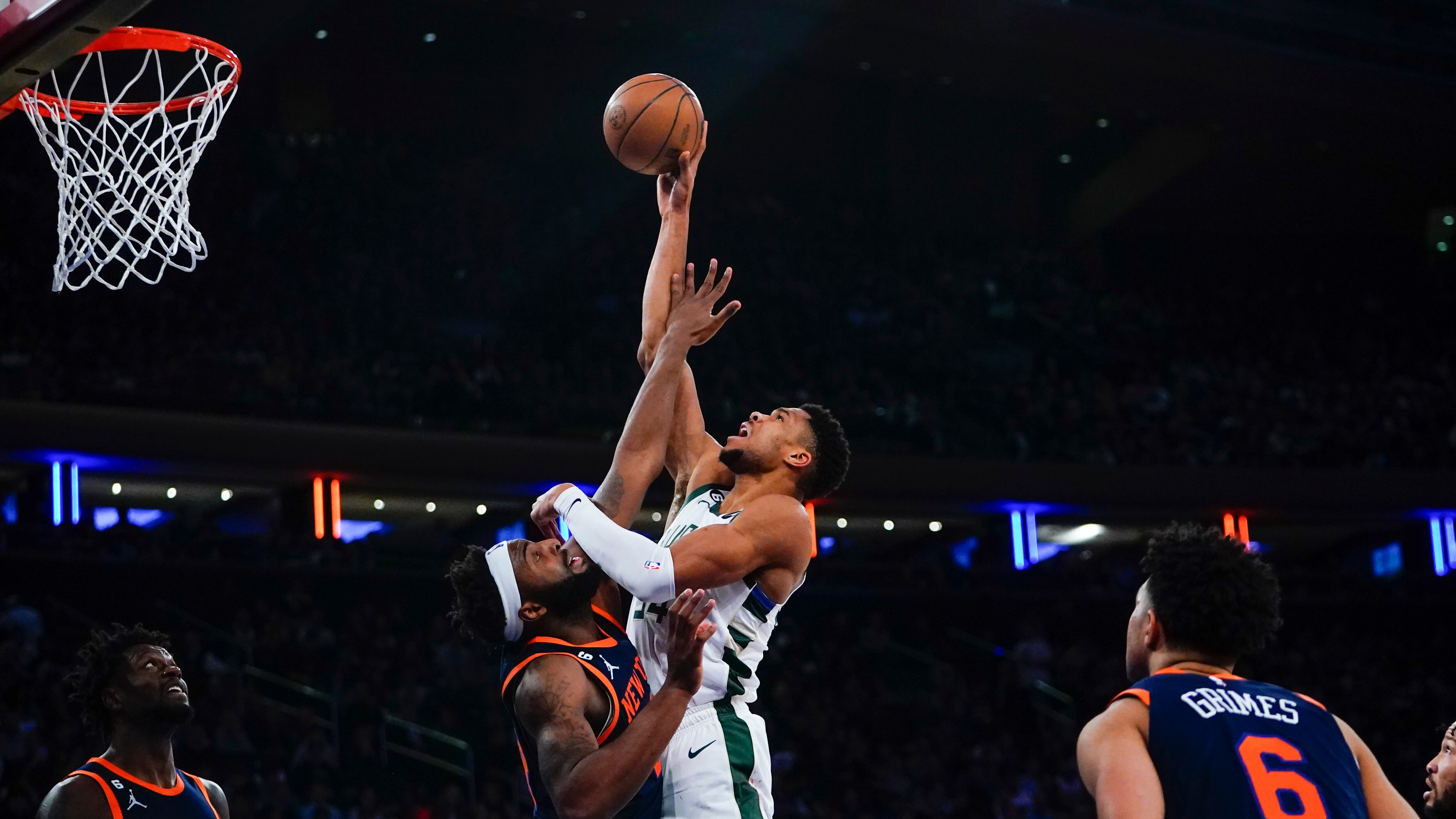 NUEVA YORK (AP) — Giannis Antetokounmpo tuvo 22 puntos y 10 rebotes y a base de triples los Bucks de Milwaukee borraron un déficit de 17 unidades en la segunda mitad para superar el lunes por 111-105 a los Knicks de Nueva York.