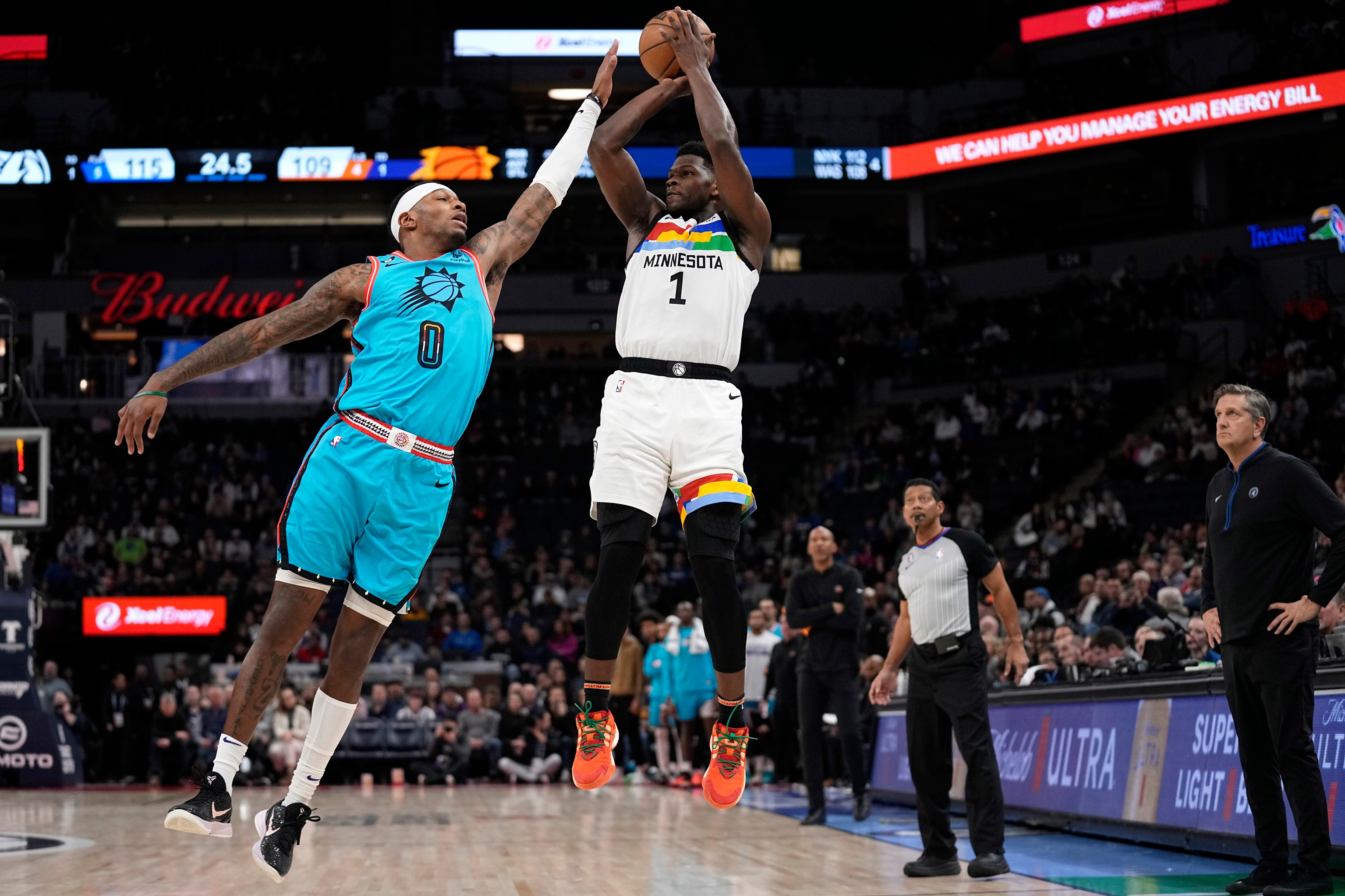 MINNEAPOLIS (AP) — Anthony Edwards consiguió 31 puntos, D’Angelo Russell anotó siete y los Timberwolves de Minnesota derrotaron el viernes 121-116 a los diezmados Suns de Phoenix.