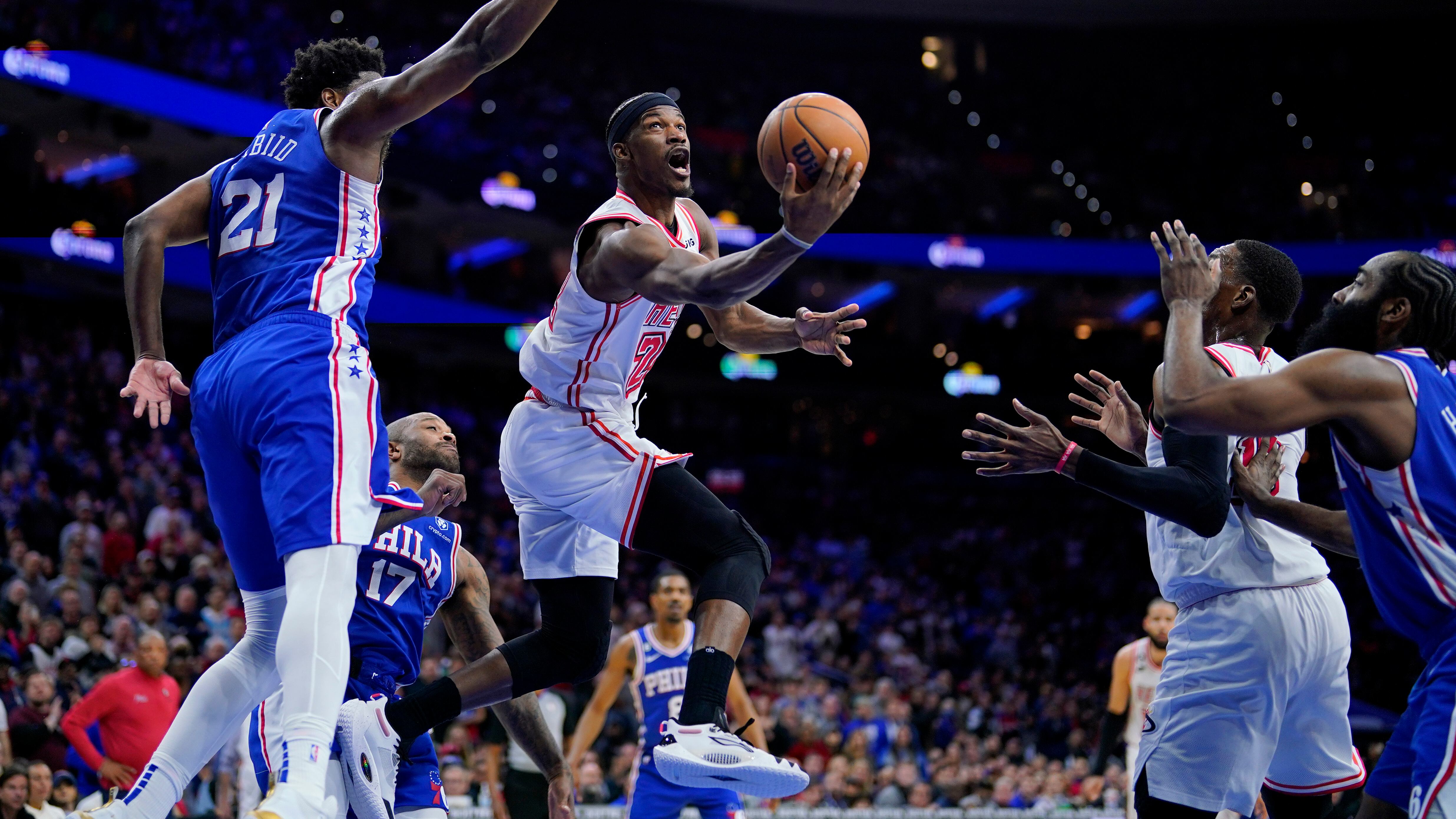 FILADELFIA (AP) — Jimmy Butler conectó con un tiro de bandeja en reversa e los minutos finales para terminar una actuación de 23 puntos y liderar a los cinco jugadores de Miami que encestaron en dobles dígitos para vencer el lunes por 101-99 a los 76ers de Filadelfia.
