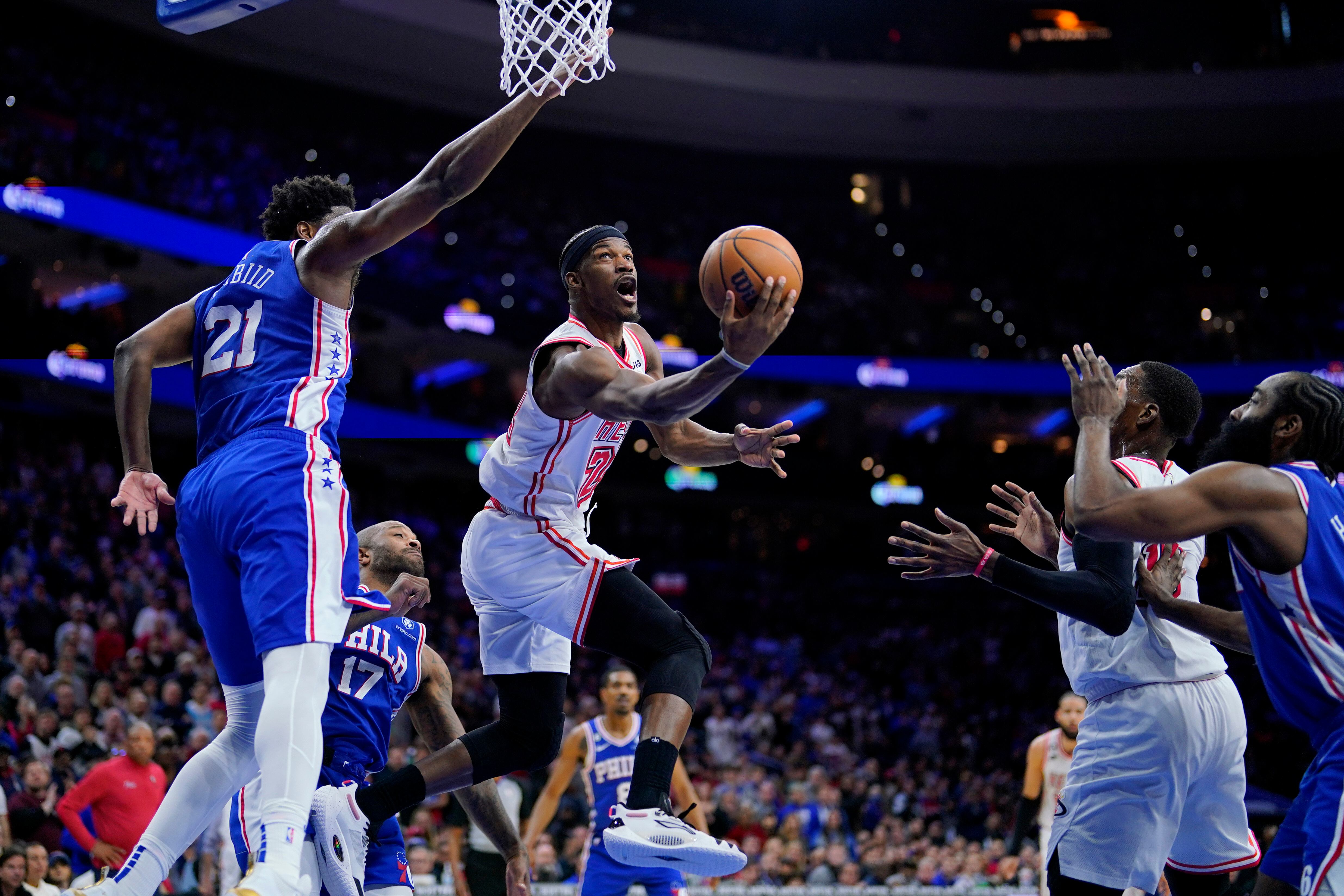Butler quedó a una asistencia del triple doble, con 11 rebotes y nueve asistencias. Con su giro y tiro de bandeja entre Joel Embiid y P.J. Tucker de los Sixers, el Heat se fue arriba 100-99 cuando quedaba 1:28 minutos por jugar después de que Filadelfia se recuperó de un déficit de 11 unidades en el cuarto periodo. Agregó un tiro libre a 8,1 segundos de terminar.