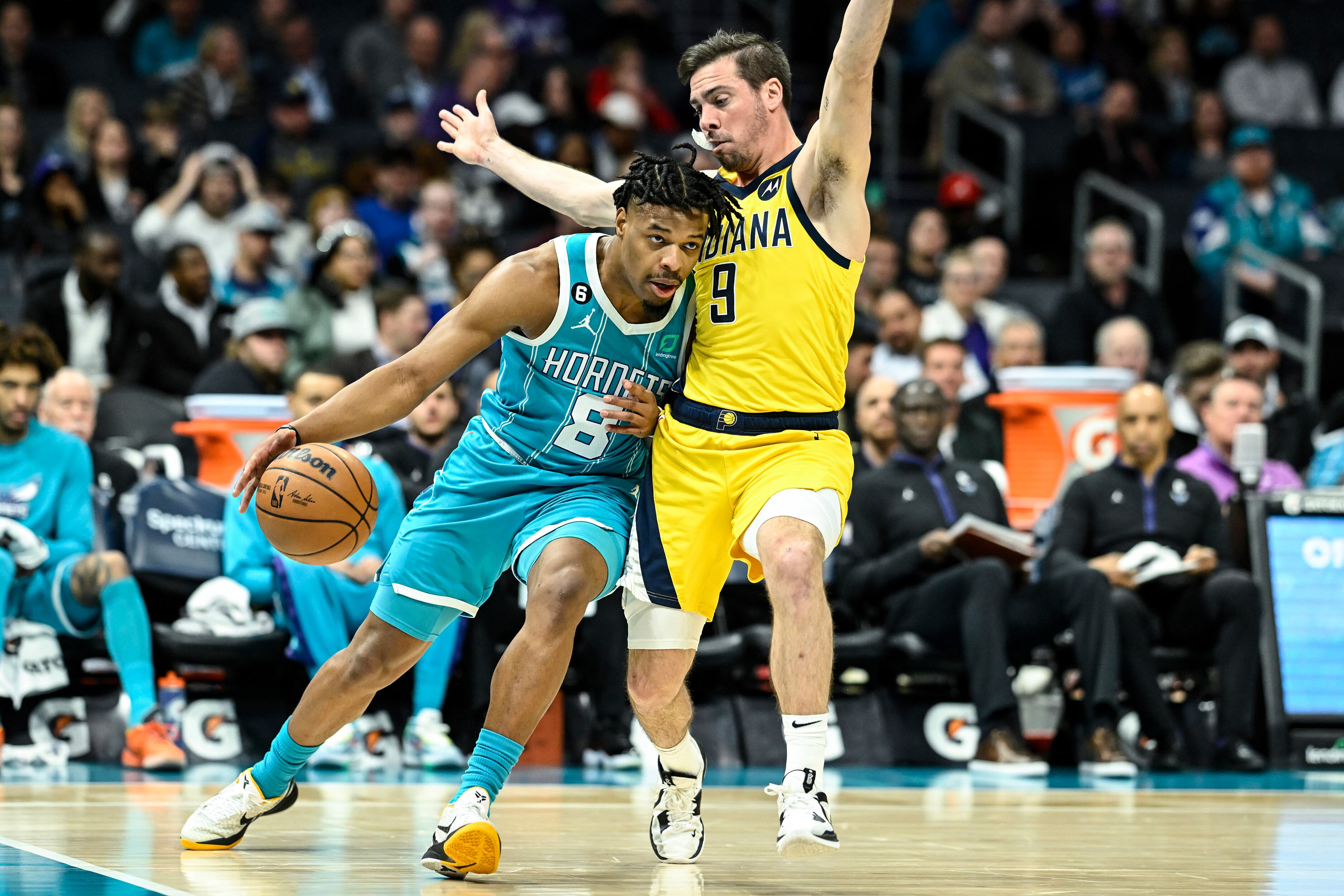Terry Rozier añadió 23 puntos y Gordon Hayward tuvo 22 por los Hornets, que superaron a los Pacers 19-4 en los últimos seis minutos para darle un duro golpe a las esperanzas de postemporada de Indiana.