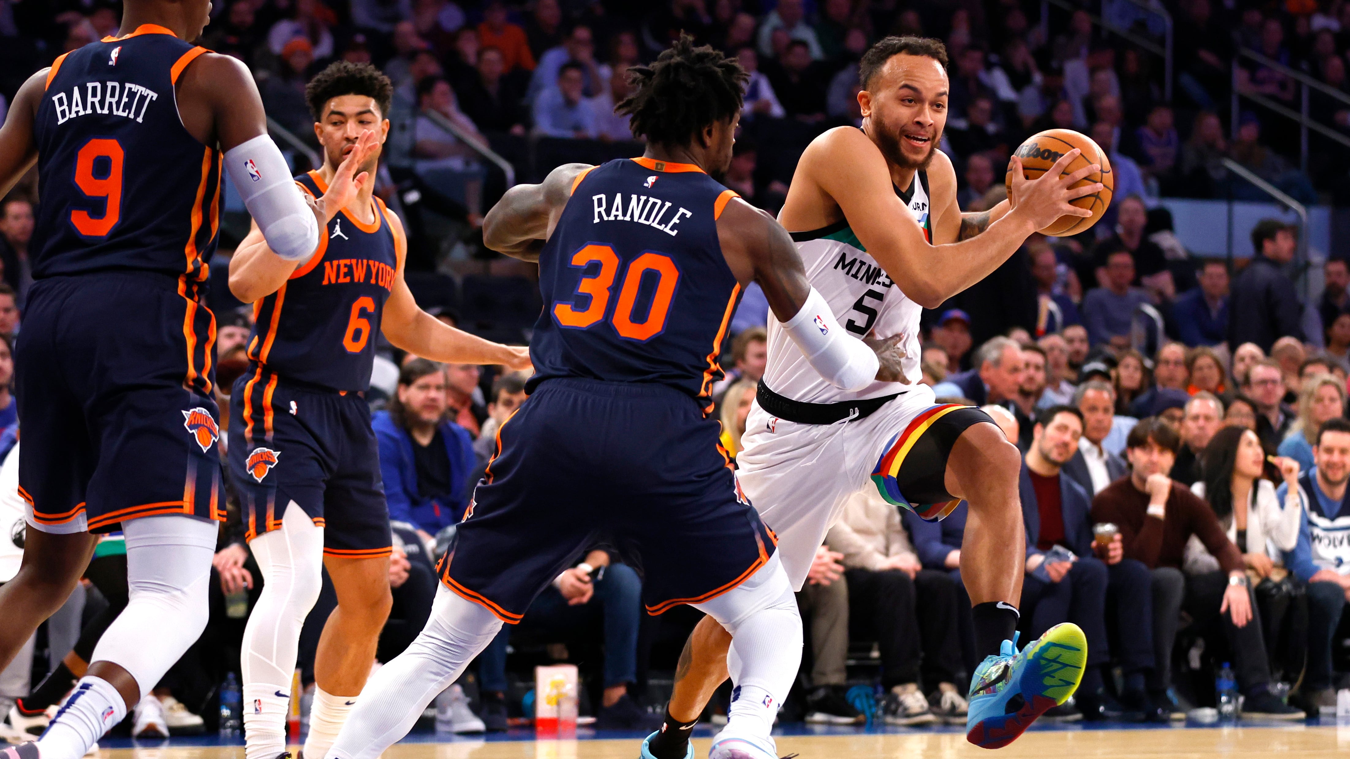 En una espectacular demostración de tiros y anotaciones, los Timberwolves acertaron 70% de sus disparos en la primera mitad y lideraron por 17, antes de que Randle cargara a los Knicks de regreso con un récord de 26 unidades en el tercer periodo.