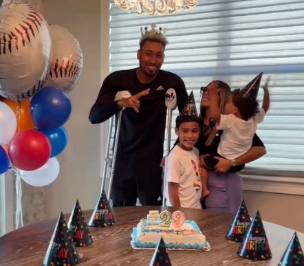 El lanzador celebró sus 29 años junto a su esposa y dos hijos.