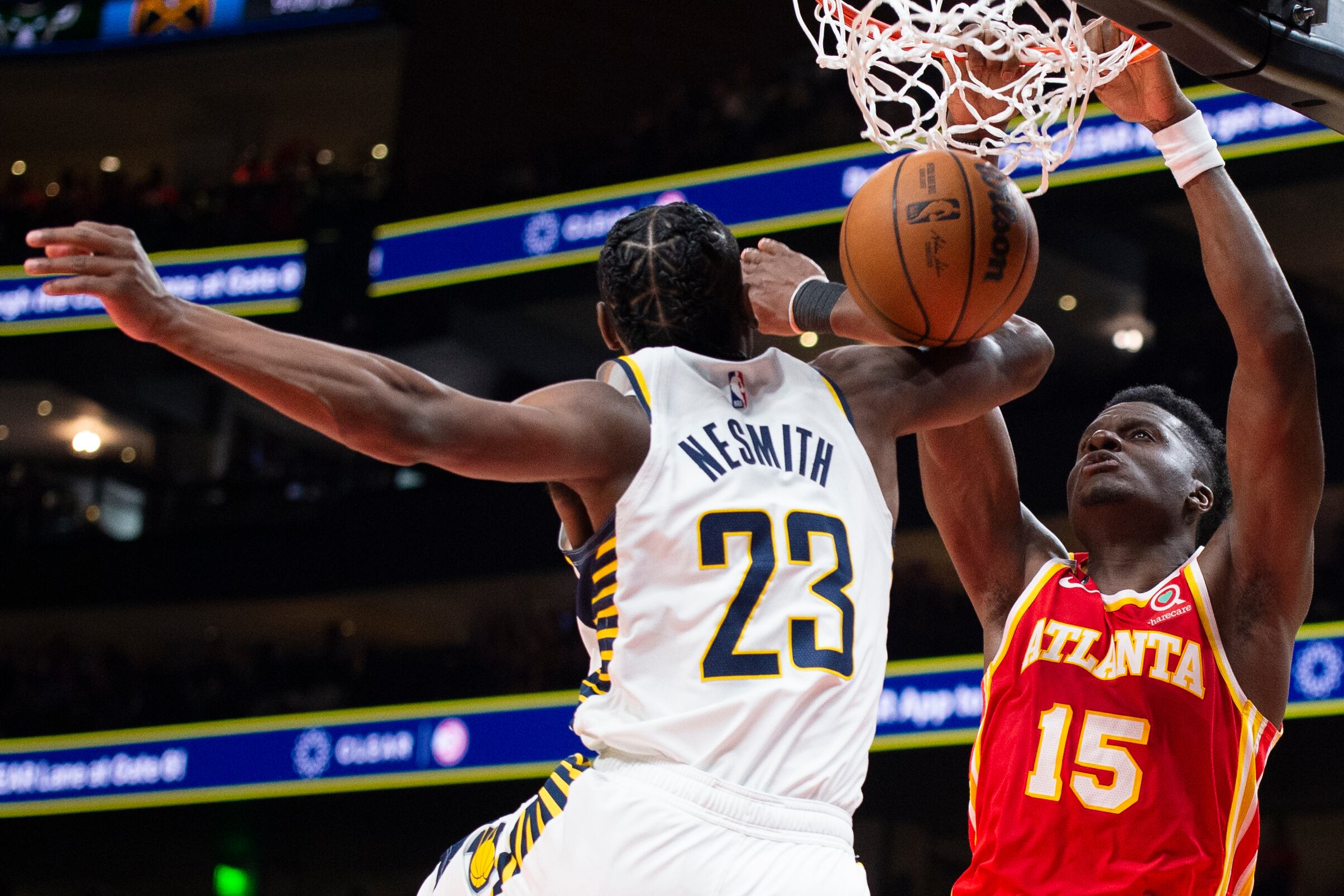 John Collins lideró a ocho jugadores de Atlanta que alcanzaron los doble dígitos en anotación al facturar el sábado 21 puntos en la victoria 143-130 ante los Pacers de Indiana.