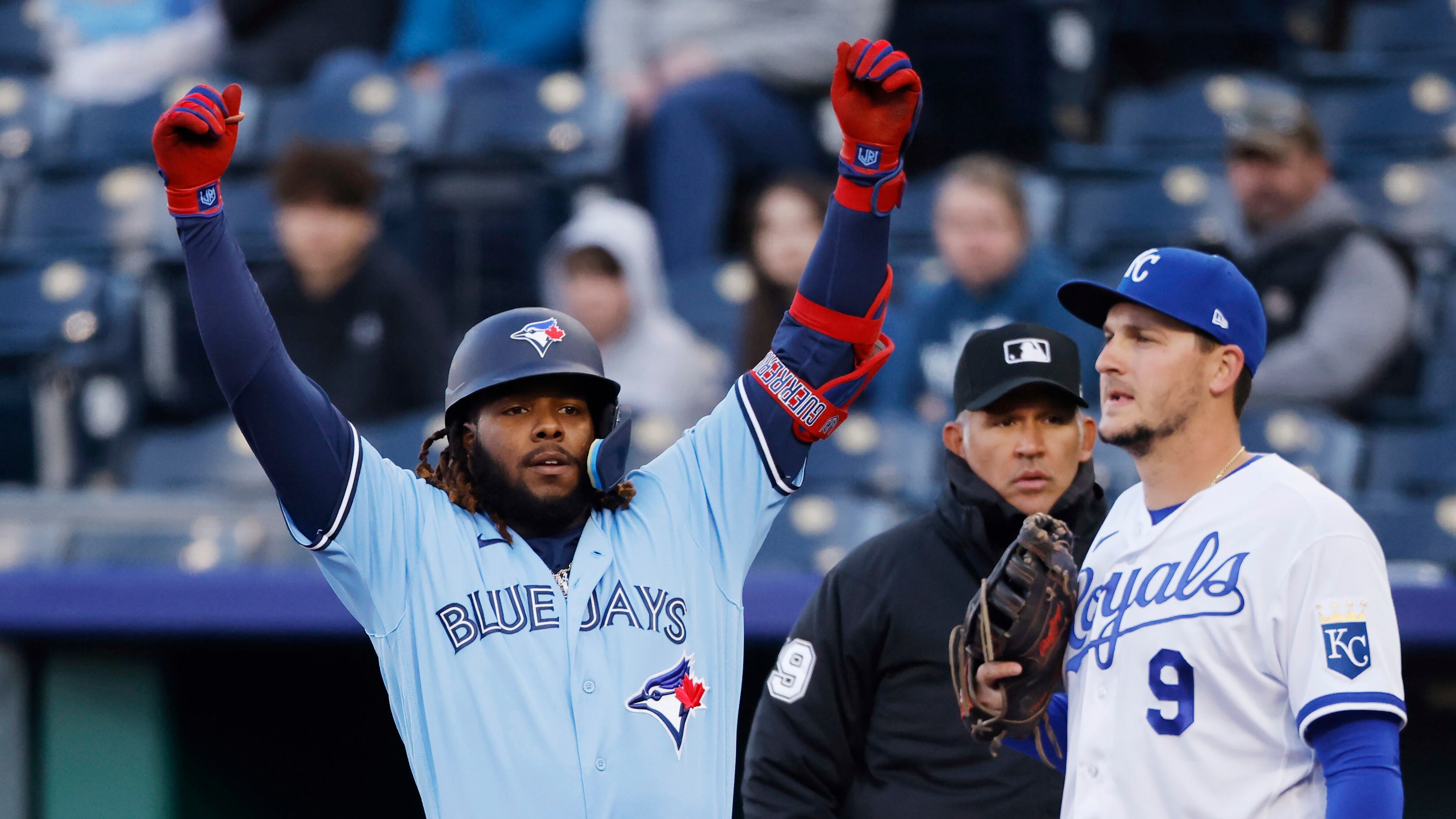 KANSAS CITY, Missouri, EE.UU. (AP) — El dominicano Vladimir Guerrero Jr. logró su primer jonrón de la temporada, Alek Manoah toleró apenas un hit en siete innings, y los Azulejos de Toronto blanquearon el miércoles 3-0 a los Reales de Kansas City.