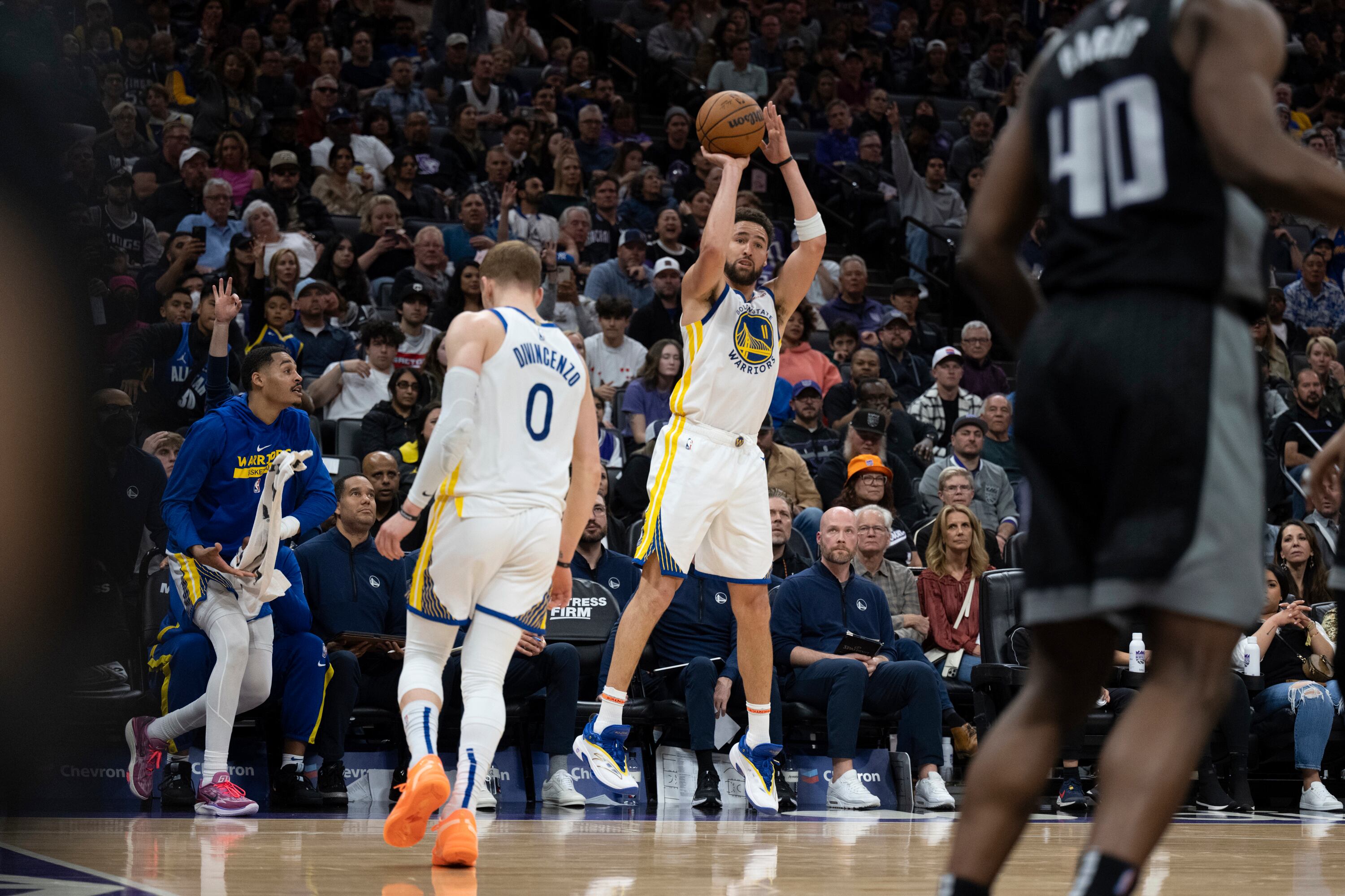 SACRAMENTO, California, EE.UU. (AP) — Klay Thompson anotó 29 puntos, Stephen Curry añadió 25 y los Warriors de Golden State se acercaron a la conquista de un boleto de playoffs, al arrollar el viernes 119-97 a los disminuidos Kings de Sacramento.
