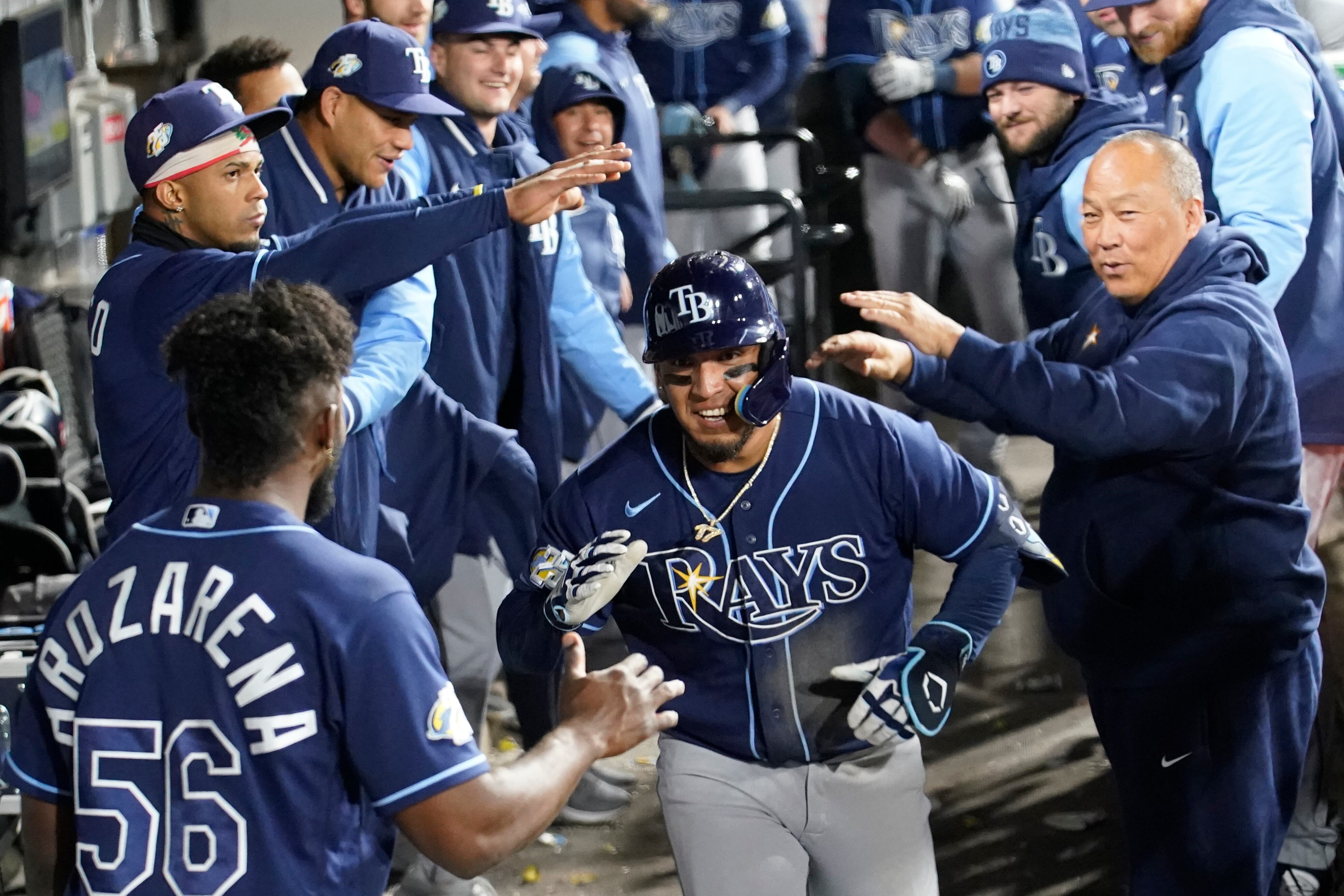 Por los Rays, el cubano Yandy Díaz de 2-1 con una anotada. Los dominicanos Wander Franco de 4-0, Manuel Margot de 4-3 con una empujada, José Siri de 4-0. Los mexicanos Randy Arozarena de 4-2, Paredes de 4-3 con dos anotadas y una empujada. El colombiano Harold Ramírez de 4-0. El panameño Christian Bethancourt de 4-0.