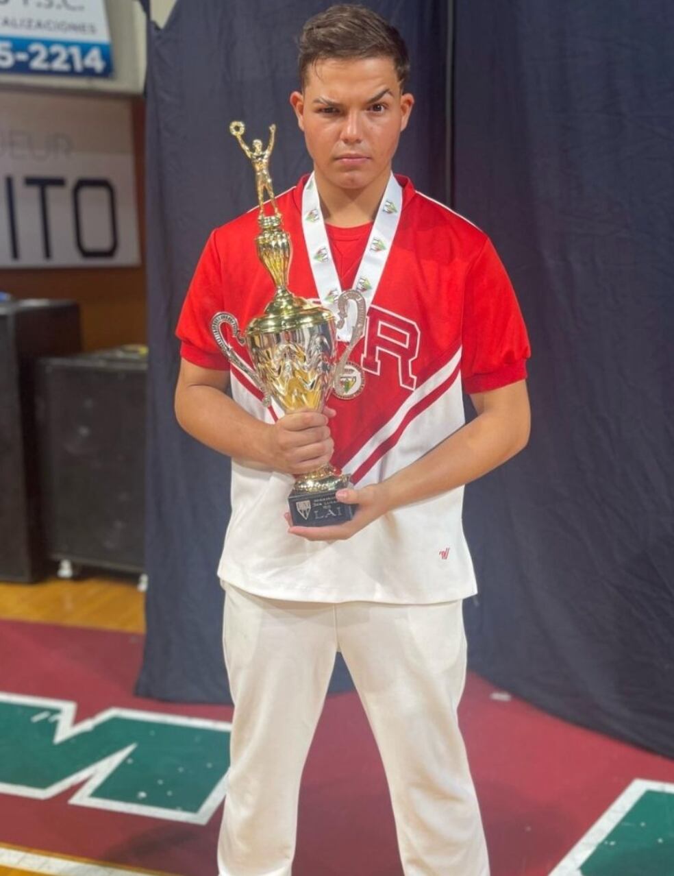 Gabriel, el hijo del secretario general del Partido Independentista Puertorriqueño, Juan Dalmau, ganó su primera medalla y trofeo en competencia de porrismo en las Justas de la Liga Atlética Interuniversitaria (LAI).