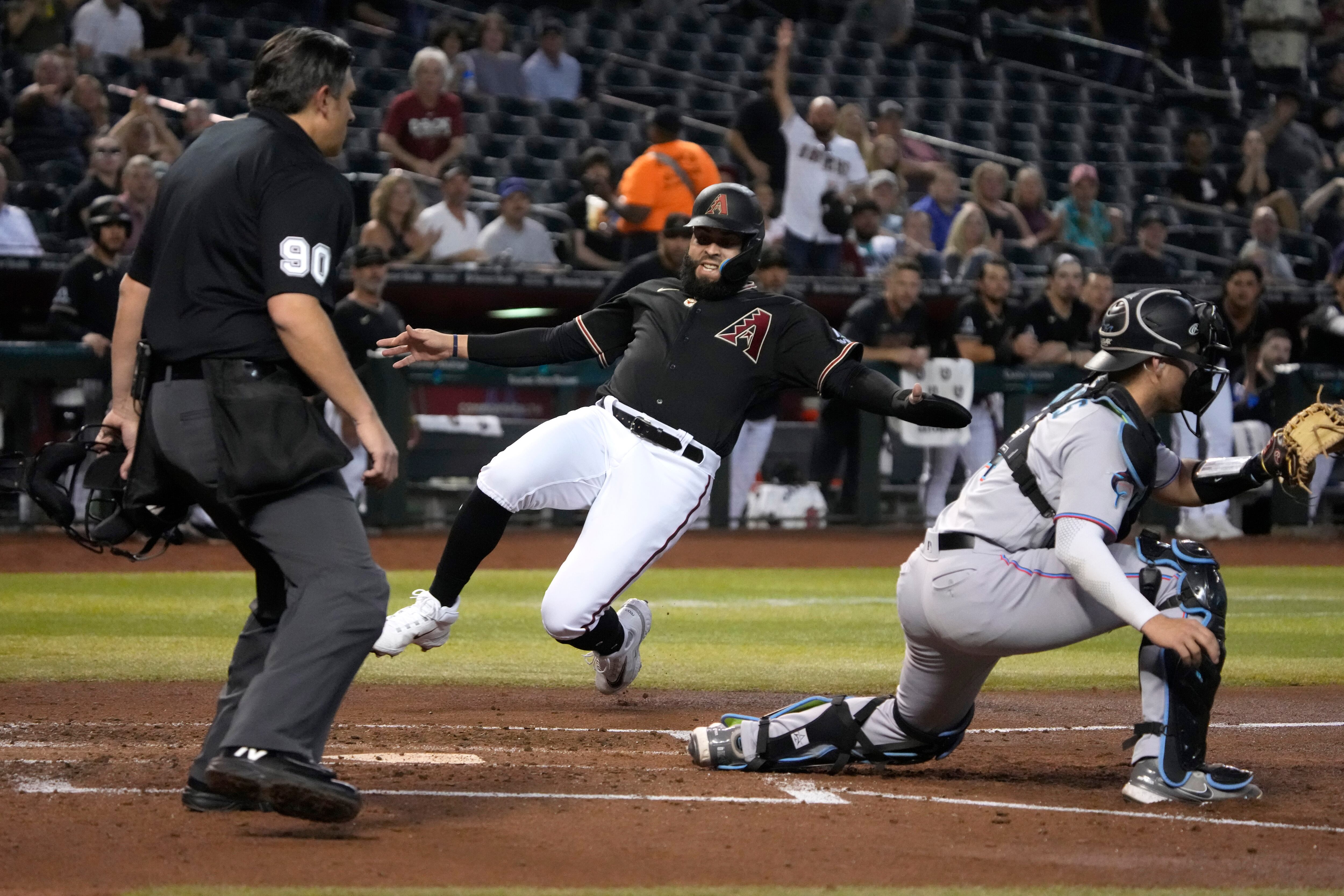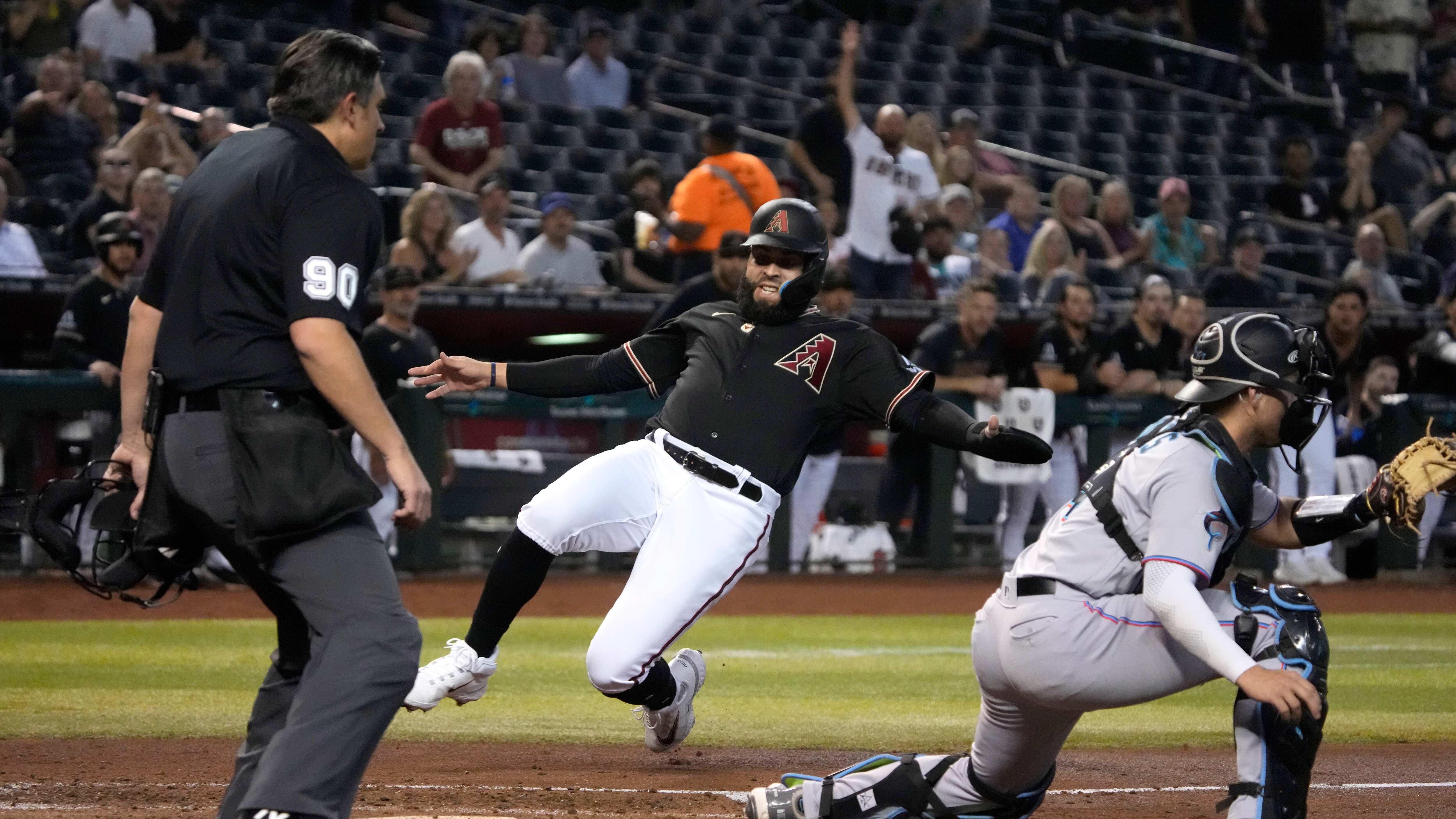 Walker abrió el marcador en la cuarta entrada con un doble al jardín izquierdo frente al abridor Braxton Garrett y con anotación del puertorriqueño Emmanuel Rivera. El cuarto al bate de Arizona le dio seguimiento con un majestuoso cuadrangular en la sexta que cayó en el segundo piso para darle la ventaja 2-1 a los D-backs.