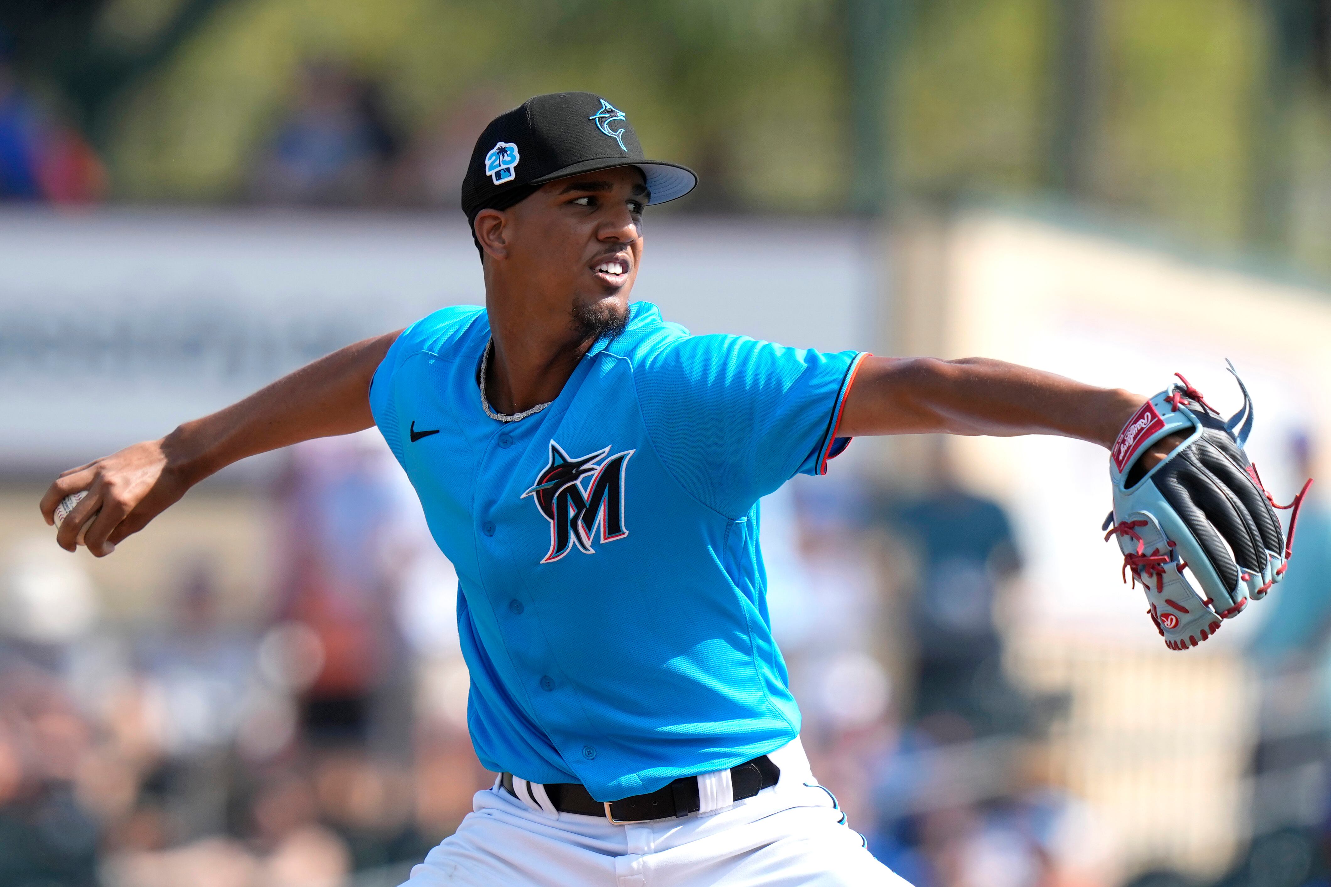 Las lesiones del zurdo Trevor Rogers y del derecho dominicano Johnny Cueto, han creado un espacio para Pérez, quien está considerado como el prospecto número 10, y el tercer mejor lanzador diestro, según MLB Pipeline. Fue llamado este miércoles procedente de la sucursal de Pensacola, en la Doble-A