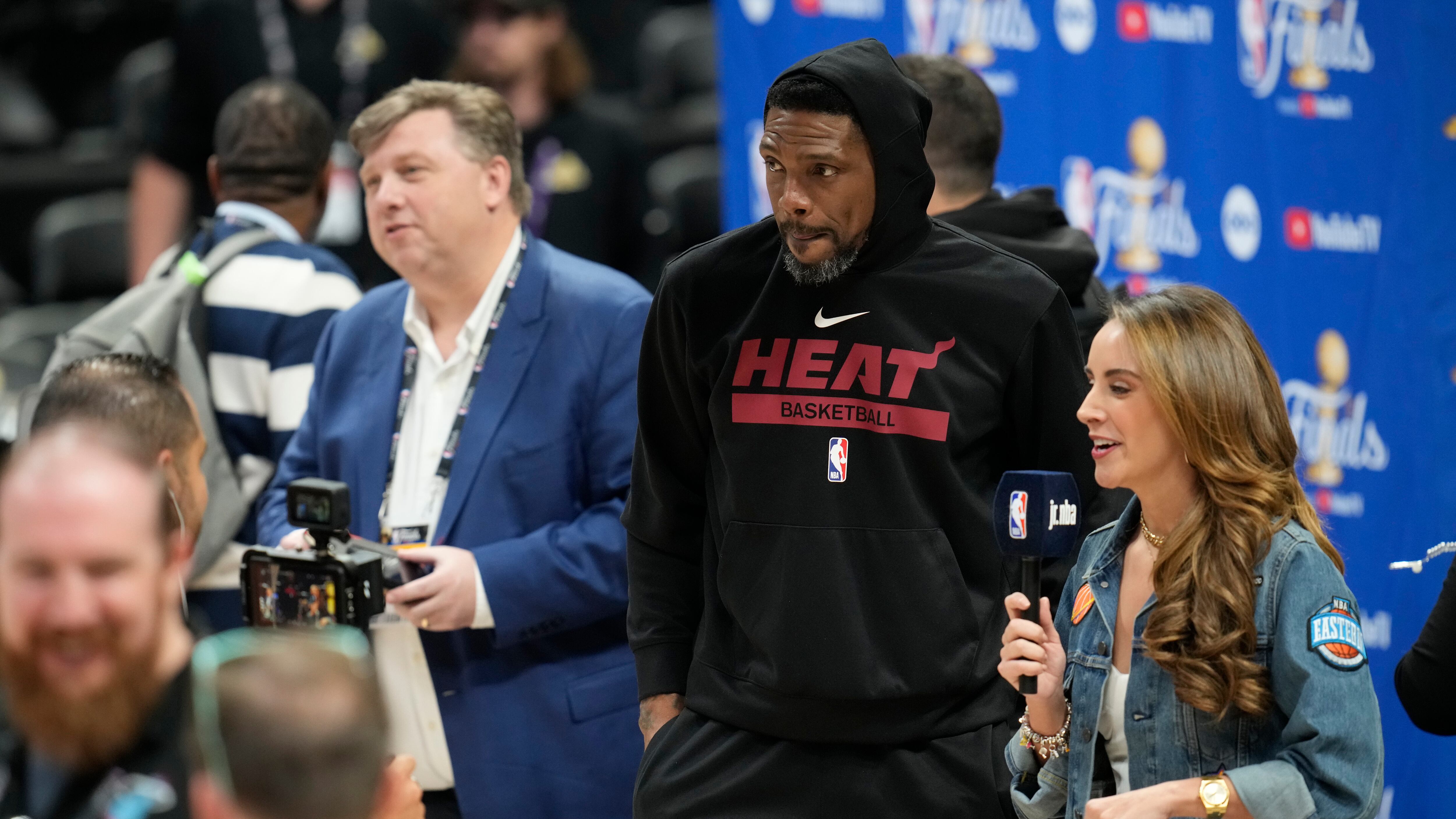 Udonis Haslem, alero del Heat de Miami, es entrevistado antes de una práctica, el miércoles 31 de mayo de 2023 (AP Foto/David Zalubowski) AP (David Zalubowski/AP)