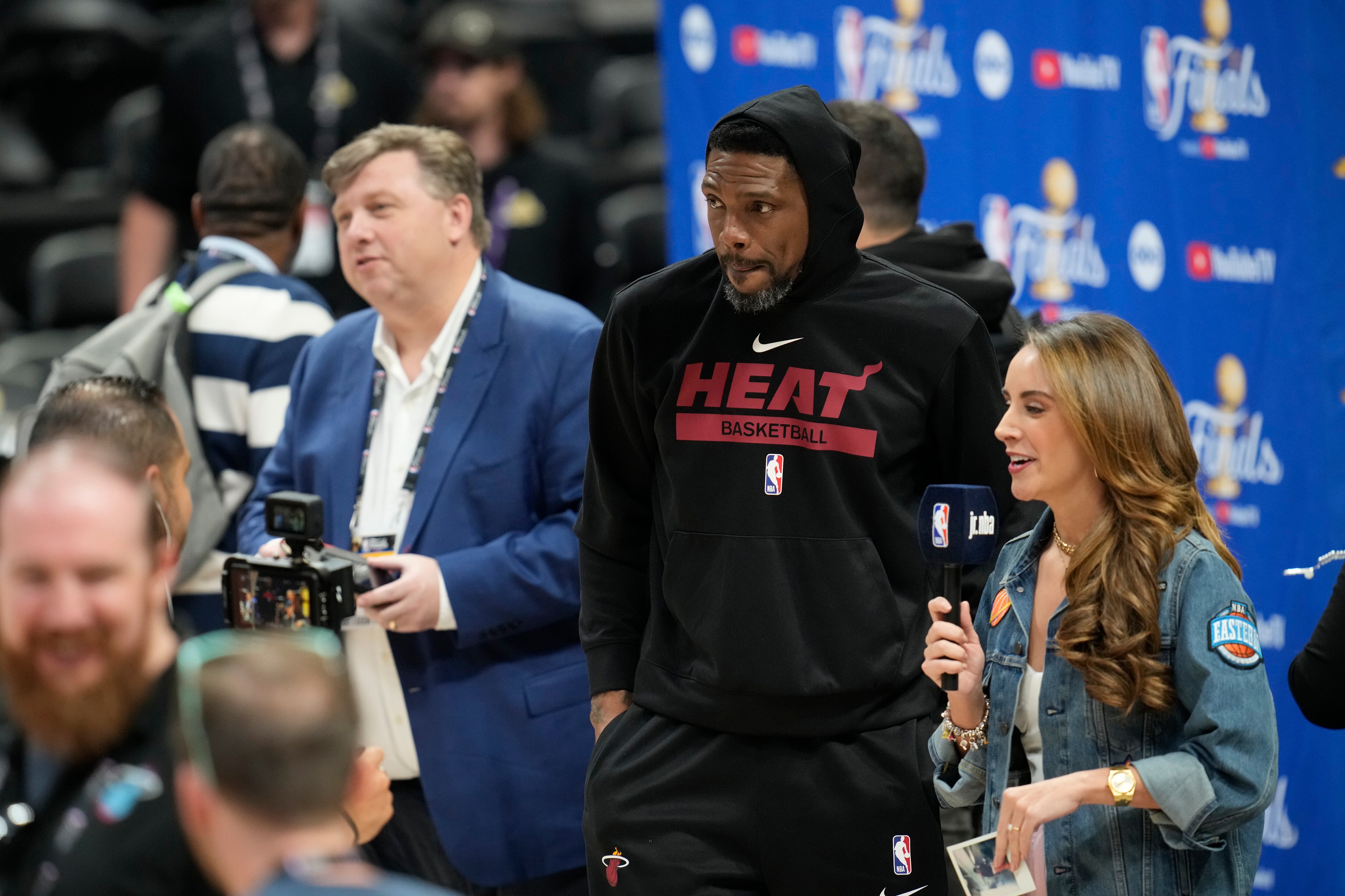 Udonis Haslem, alero del Heat de Miami, es entrevistado antes de una práctica, el miércoles 31 de mayo de 2023 (AP Foto/David Zalubowski) AP (David Zalubowski/AP)